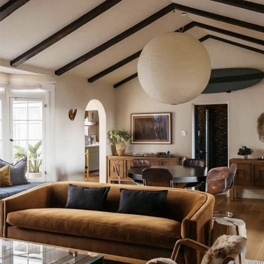 Embrace the serene elegance of light and shadow. Meticulously crafted from handmade washi paper and natural bamboo, each Akari lamp diffuses a soft, moon-like glow, transforming your space into a tranquil sanctuary of warmth and poetic modernism.