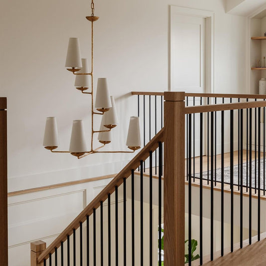 Elevate your transitional spaces with graceful illumination. Featuring a secure structure and soft, balanced light for safe passage, this elegantly crafted chandelier adds a touch of refined beauty to your home's architectural flow.