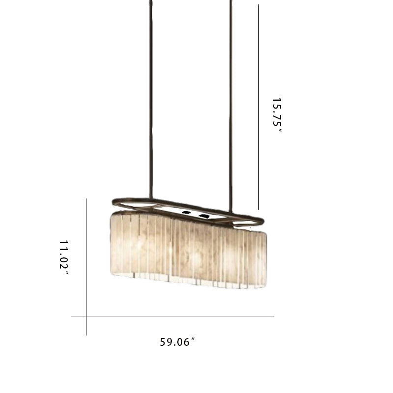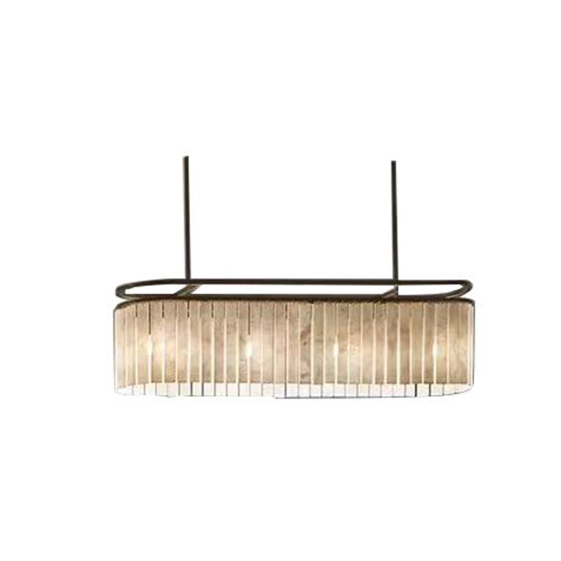 VOLANDER by Romatti is a sophisticated chandelier with a metal base and a rectangular marble inlay shade.