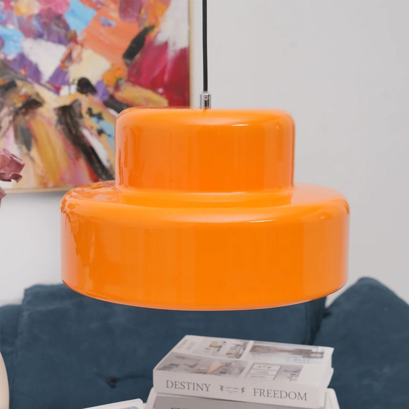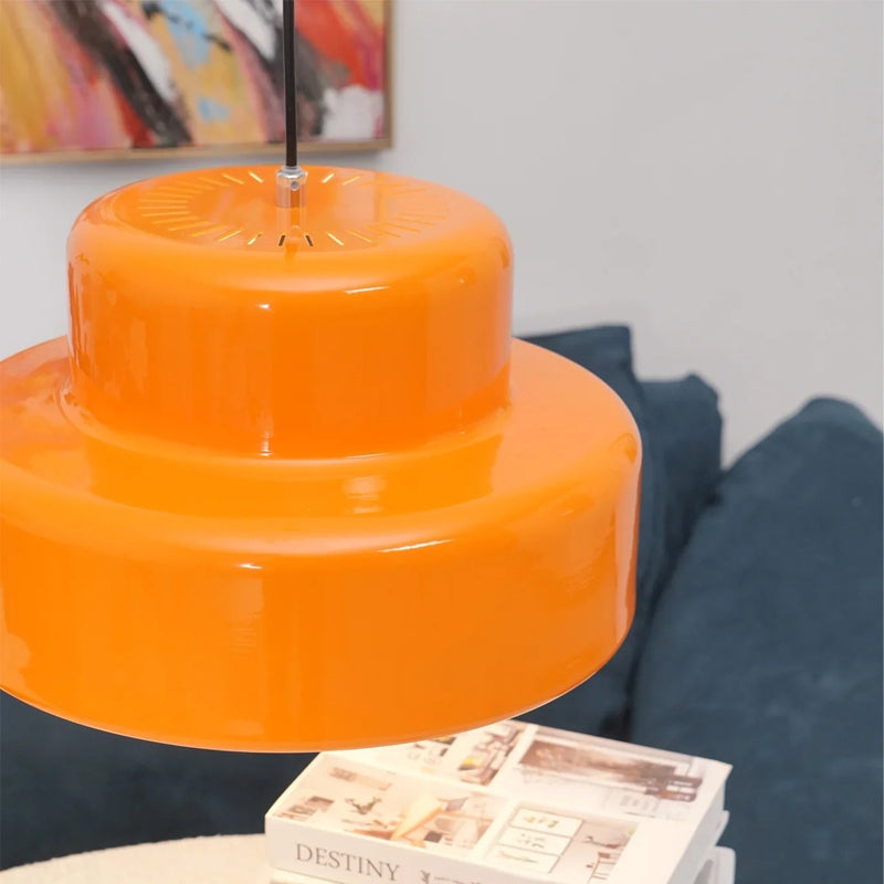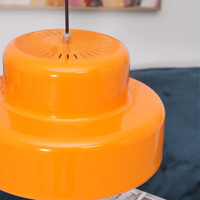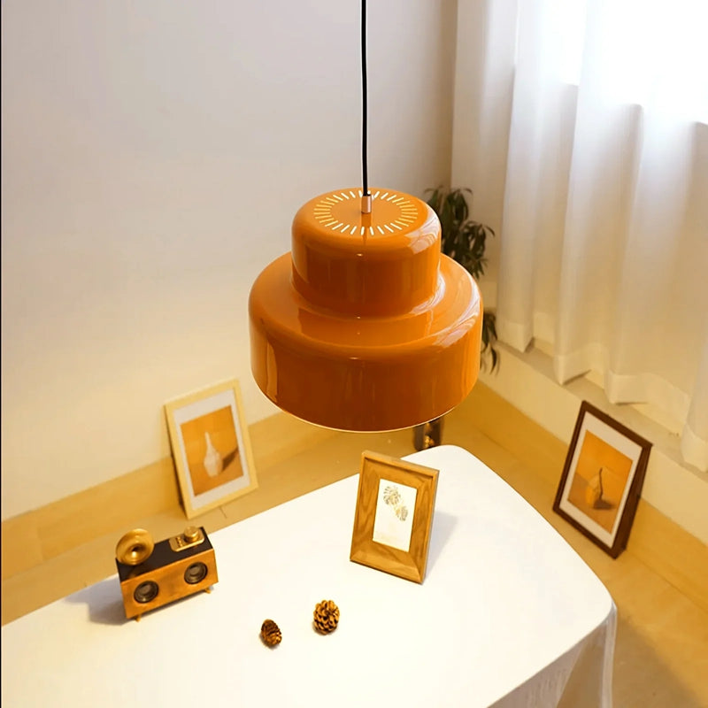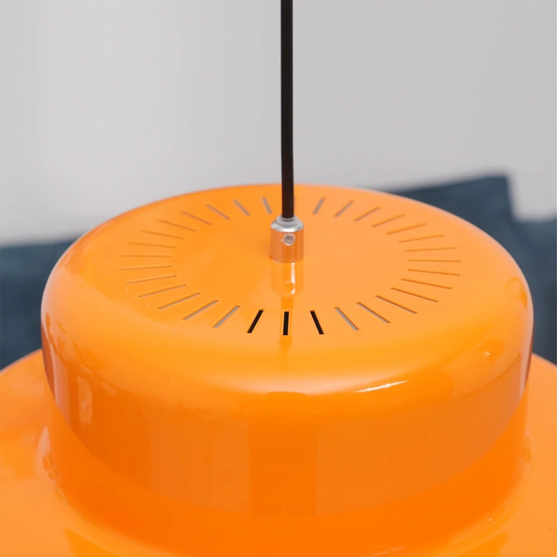 The Castle Chandelier features a simple yet elegant design, with a gently curved screen with a large radius. The eye-catching perforations at the top not only enhance its visual appeal, but also effectively dissipate heat while casting a subtle, indirect light into the room. With its vibrant orange finish, this orange chandelier is a great choice for a large ceiling light. Whether you're looking for living room ceiling light ideas or looking to add a touch of sophistication to your space, this Castle Chandelier light seamlessly blends functionality with style, making it the perfect addition to any interior setting.
