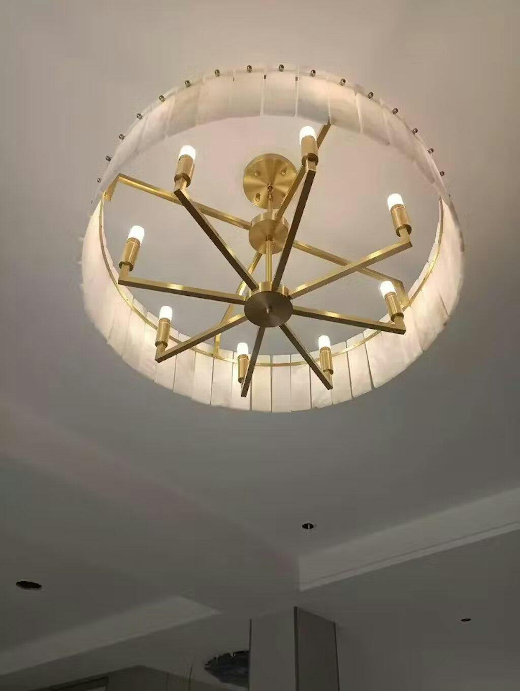 The appearance is exquisite, the texture of the alabaster lampshade is natural and smooth, and the brass part is exquisitely crafted. It is easy to install and has a good lighting effect. Whether it is placed in the living room or the dining room, it can become the focus.