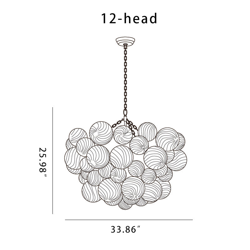 12-Head: Diameter 86cm x H 66cm ∅ 33.86″ x H 25.98″