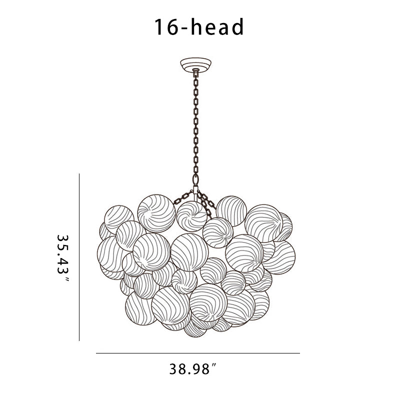 16-Head: Diameter 99cm x H 90cm ∅ 38.98″ x H 35.43″