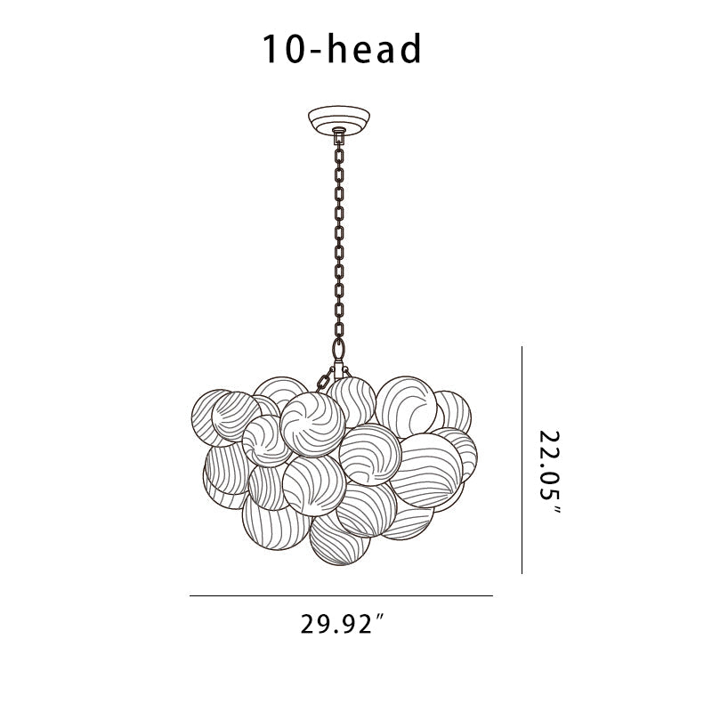 10-Head: Diameter 76cm x H 56cm ∅ 29.92″ x H 22.05″