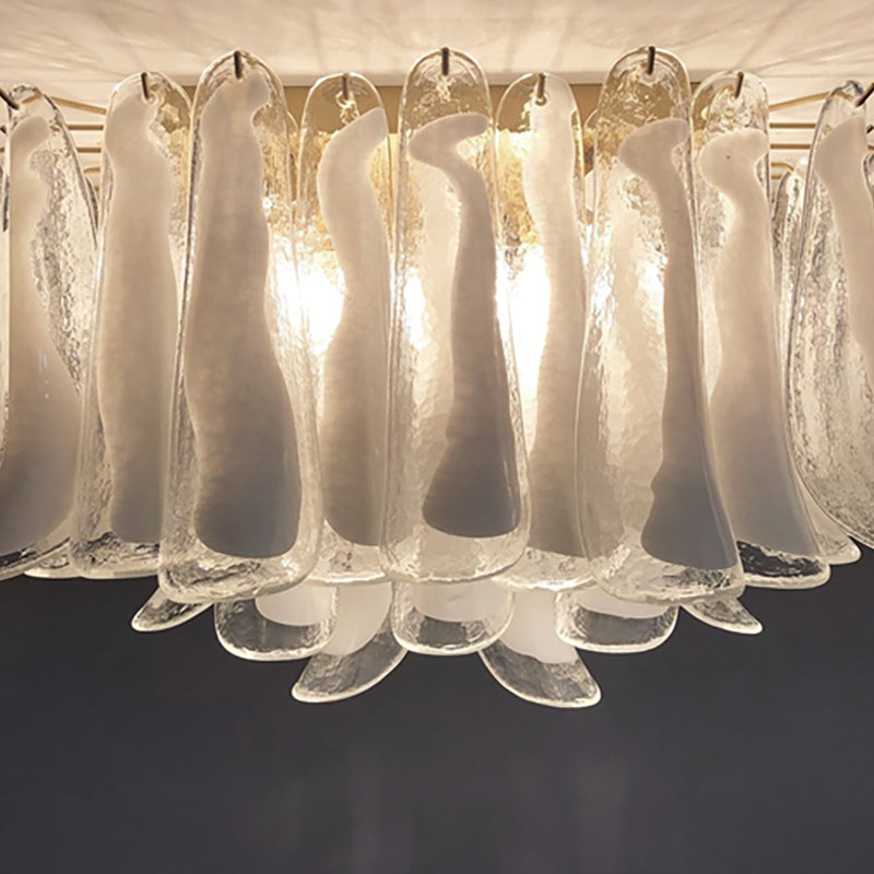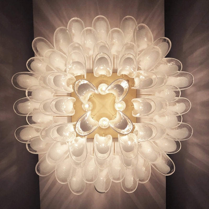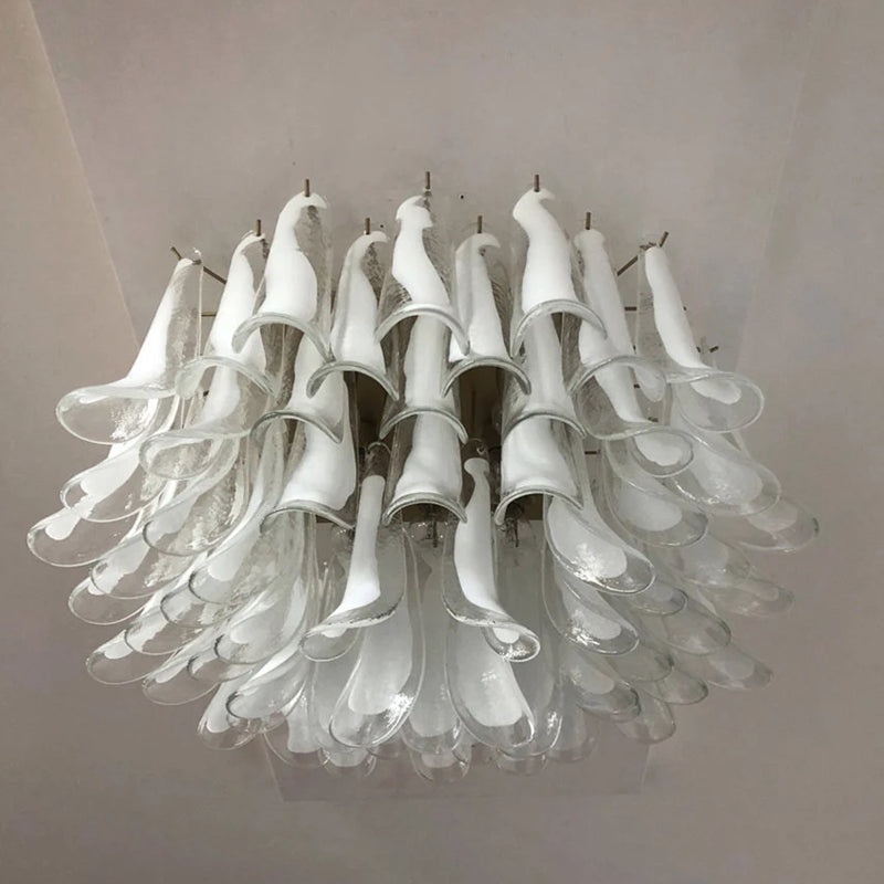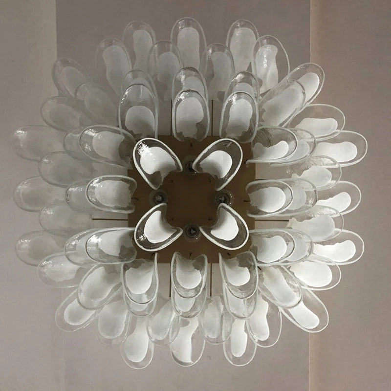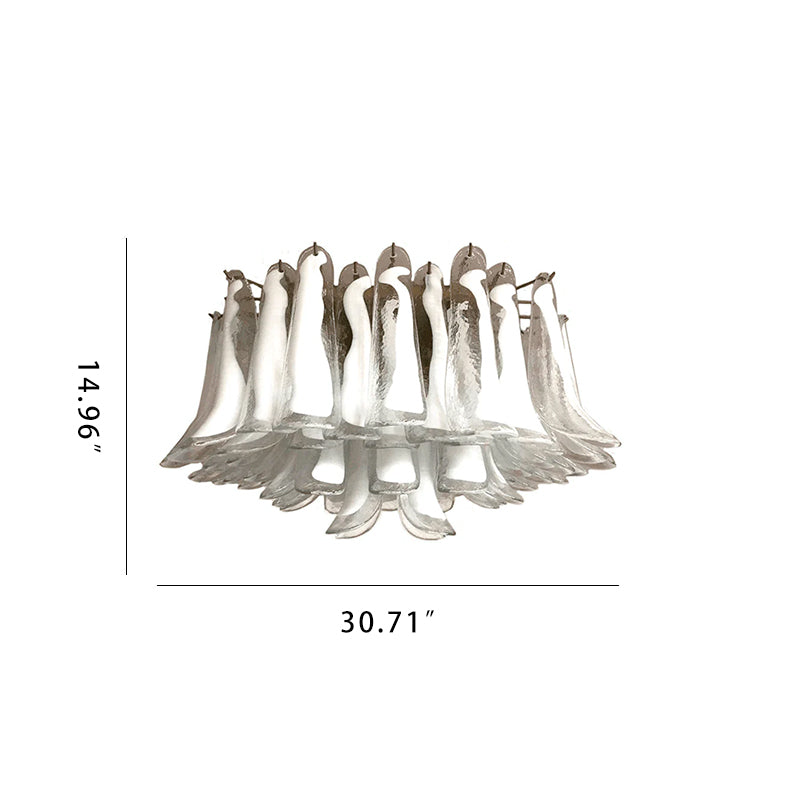 The White Latimer Glass Petal Chandelier combines elegant design with expert craftsmanship. Its delicate glass petals, arranged in a sophisticated cluster, create a soft, diffused light that enhances any space with a refined ambiance. Perfect for dining rooms or entryways, this chandelier offers both aesthetic appeal and functional illumination, elevating your interior with a timeless statement piece.