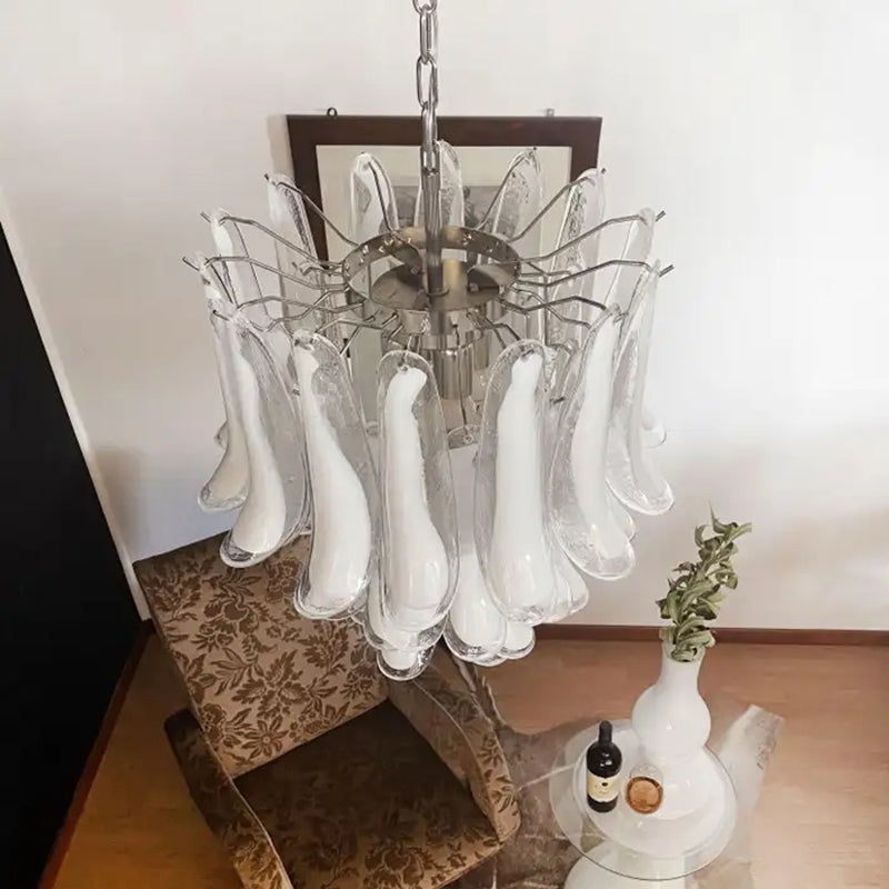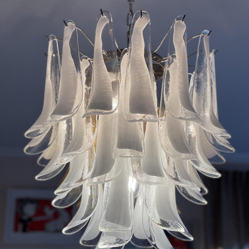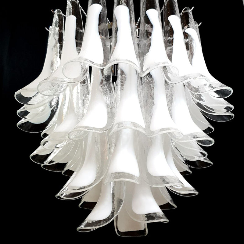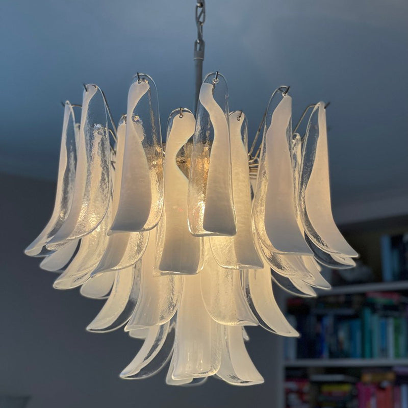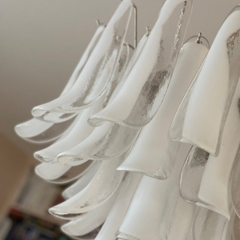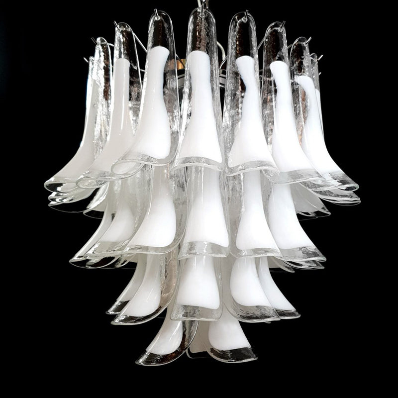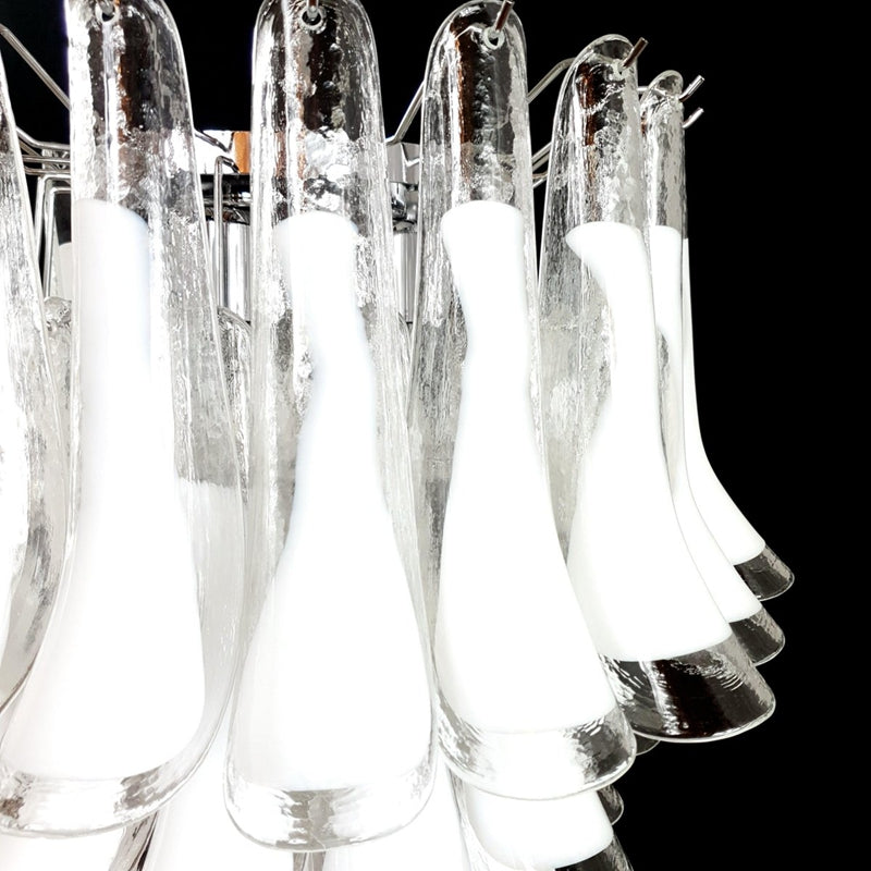 Elevate your space with this large white Murano glass chandelier, expertly crafted in Italy using traditional techniques. The chandelier’s luminous white glass brings a timeless elegance and delicate beauty, creating a focal point that enhances any room’s ambiance. Its substantial size makes it perfect for grand entrances, dining areas, or living spaces, while the handcrafted design ensures each piece is unique and of exceptional quality. Ideal for those seeking sophisticated lighting with artistic heritage and refined aesthetics.