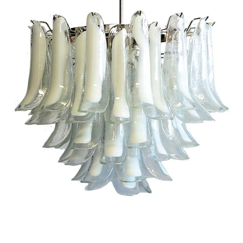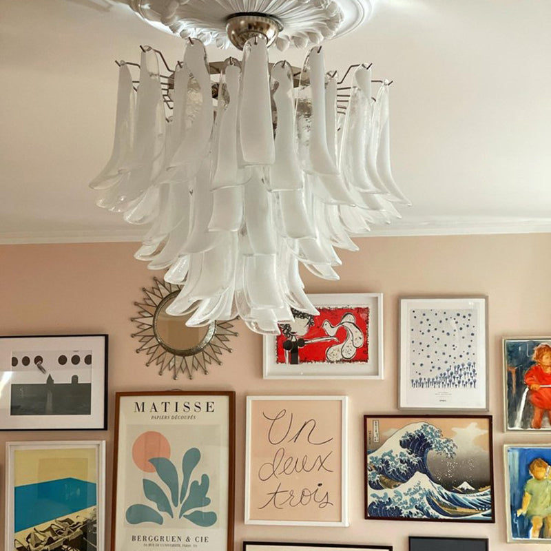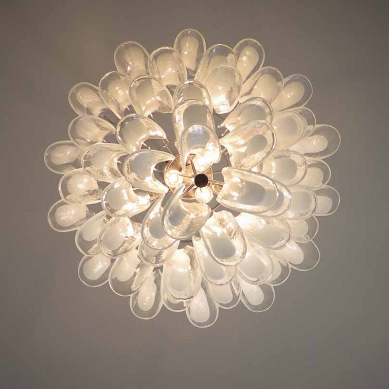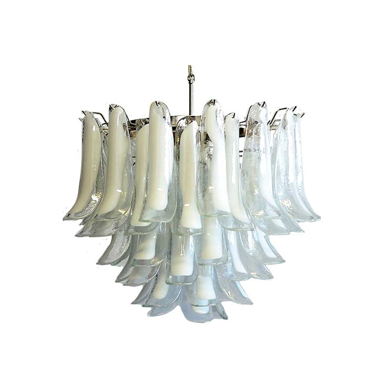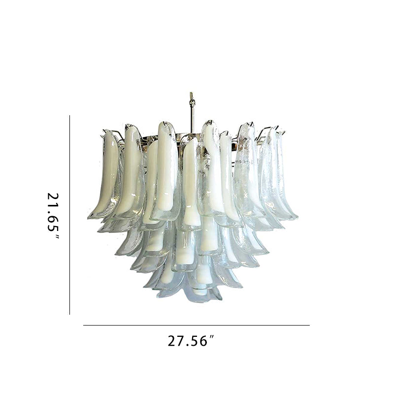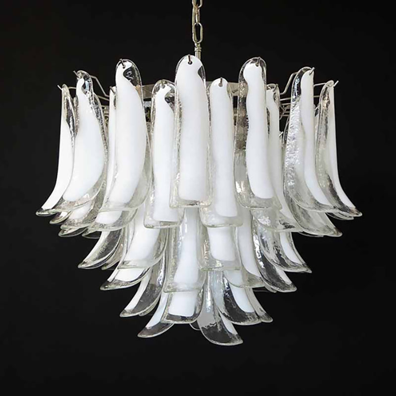 This large white petal Murano chandelier showcases exquisite craftsmanship with hand-blown Murano glass petals arranged in an elegant, flowing design. Its luminous white finish diffuses light softly, creating a refined ambiance that enhances both classic and contemporary interiors. Ideal for grand entryways or spacious living areas, this chandelier serves as a statement piece that marries artistic heritage with sophisticated lighting.