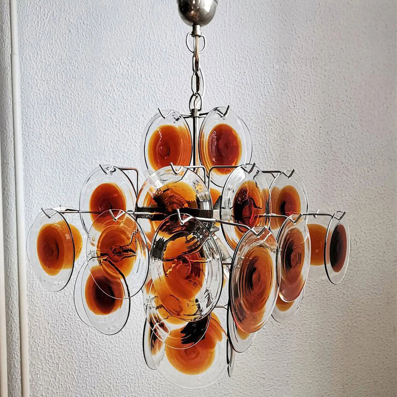 The Mazzega Vistosi Chandelier exemplifies refined Italian craftsmanship, featuring exquisite hand-blown Murano glass elements that create a stunning interplay of light and color. Meticulously designed, this chandelier enhances sophisticated interiors by offering both artistic beauty and ambient illumination. Its elegant form and delicate details make it a captivating centerpiece, ideal for spaces that demand a combination of timeless style and expert design. Perfect for elevating residential or commercial settings with a touch of Venetian elegance.