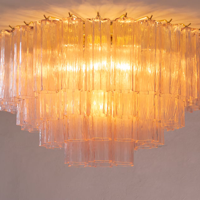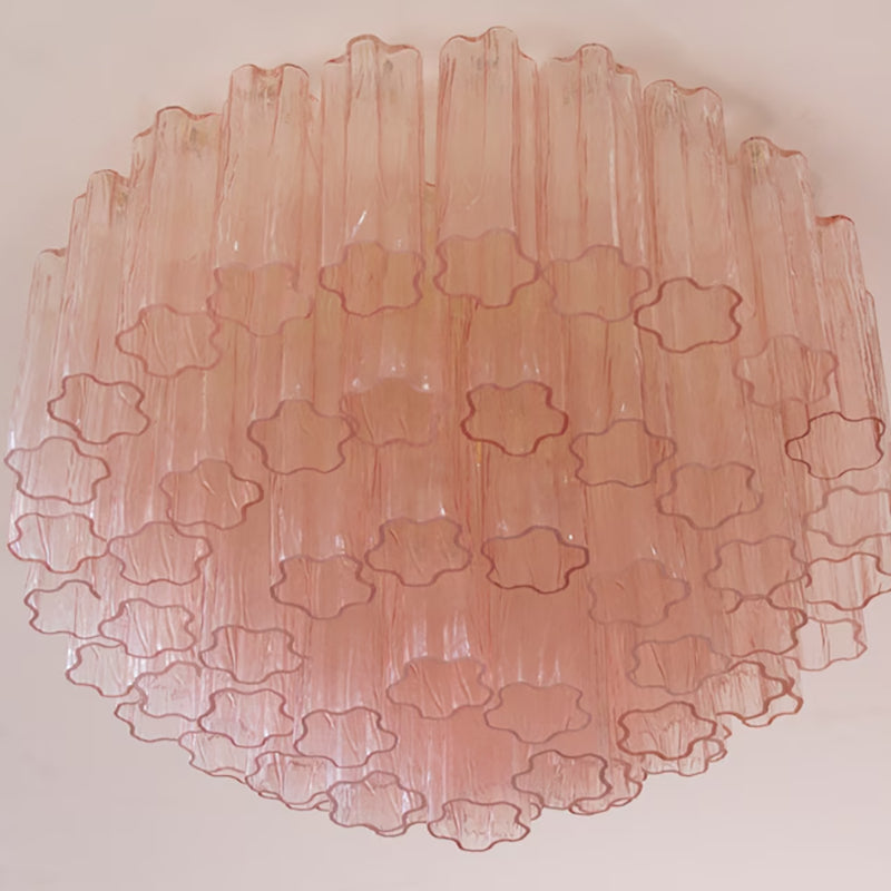 This Vintage Murano pink glass ceiling lamp showcases the timeless artistry of Murano glassmaking. Crafted with delicate pink glass, it adds a refined, warm glow to any interior. Its elegant design merges classic charm with expert craftsmanship, making it a perfect centerpiece for sophisticated spaces seeking both beauty and heritage.