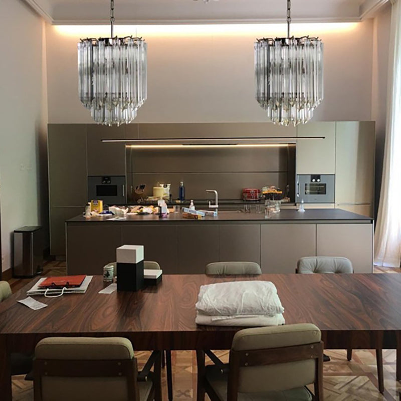 The lamp body is made of solid metal, forged and carved by hand. Exquisite polishing technology ensures a stable structure and perfect details. The luster of the metal and the crystal glass complement each other, showing a luxurious texture.