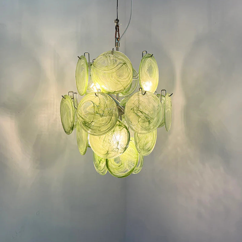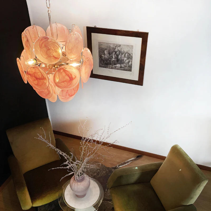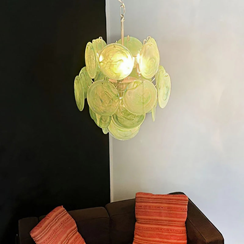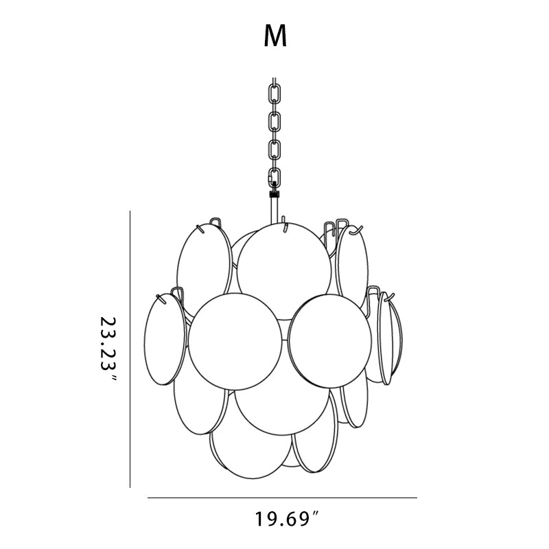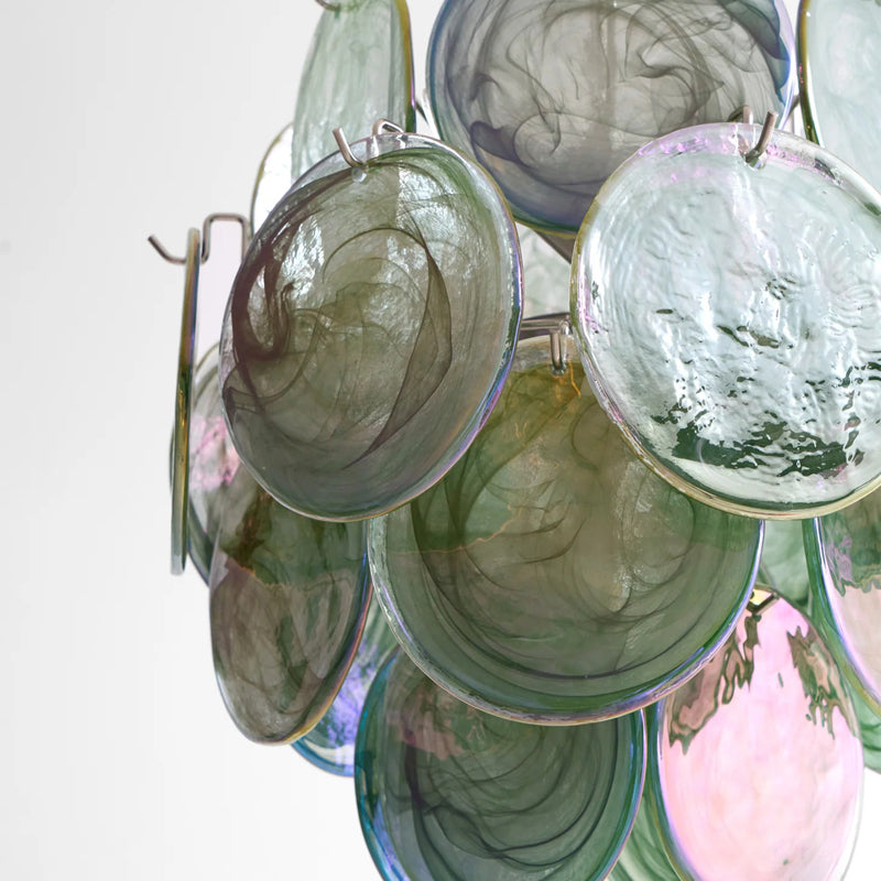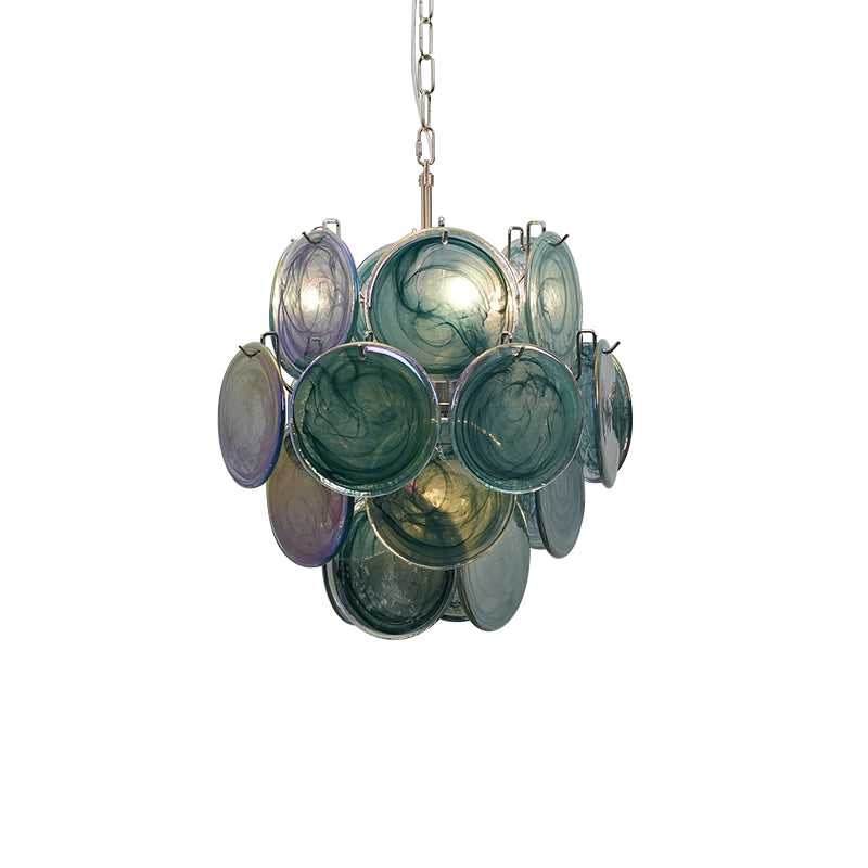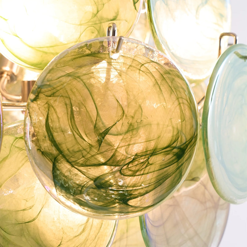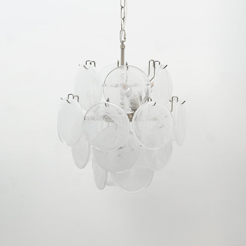 The Lunaria Disc Murano chandelier showcases exquisite Murano glass craftsmanship, blending elegant form with artistic detail. Its disc-shaped glass elements cast a warm, ambient glow, creating a sophisticated centerpiece for any interior. Designed for discerning spaces, this chandelier combines refined aesthetics with durable materials, enhancing both style and atmosphere in residential or commercial settings.