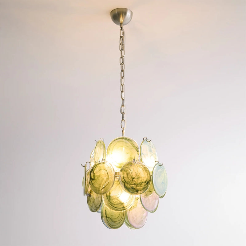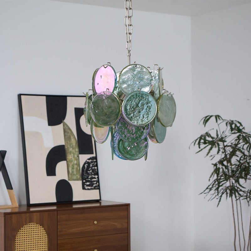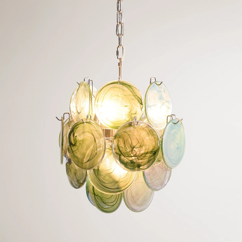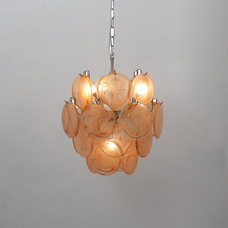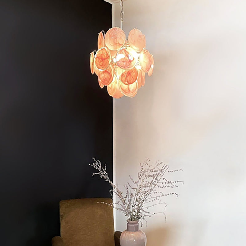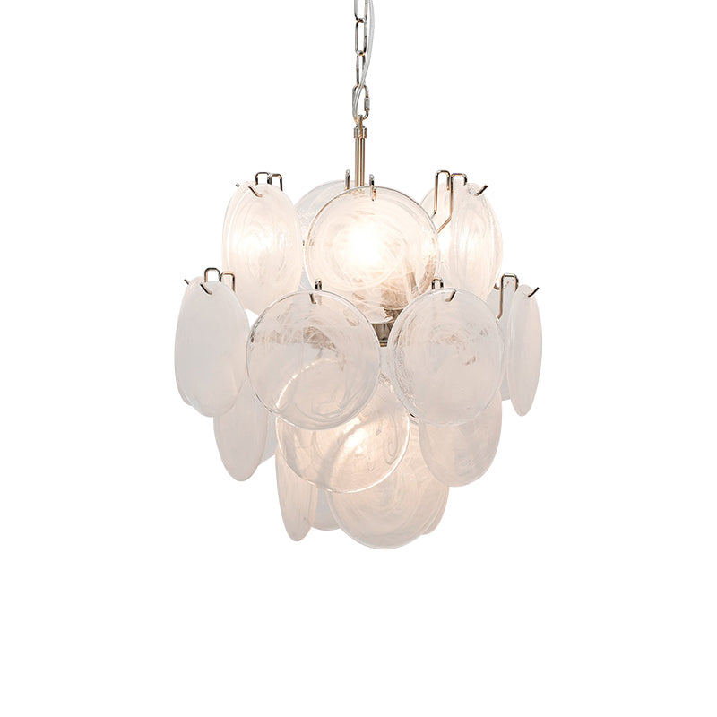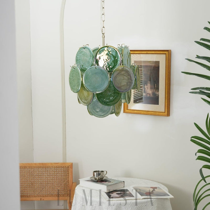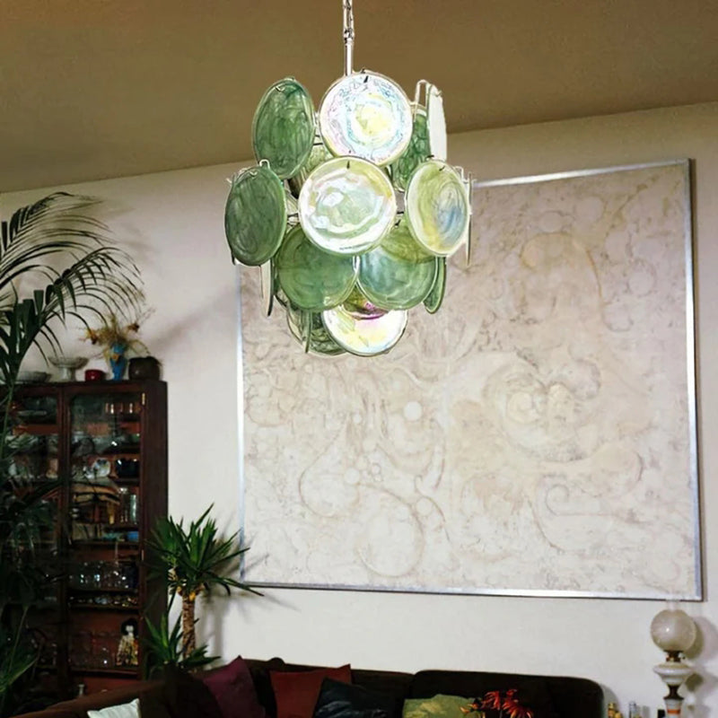 The Lunaria Disc Murano chandelier showcases exquisite Murano glass craftsmanship, blending elegant form with artistic detail. Its disc-shaped glass elements cast a warm, ambient glow, creating a sophisticated centerpiece for any interior. Designed for discerning spaces, this chandelier combines refined aesthetics with durable materials, enhancing both style and atmosphere in residential or commercial settings.