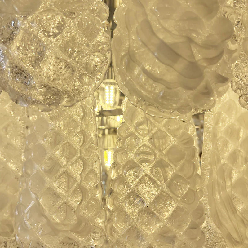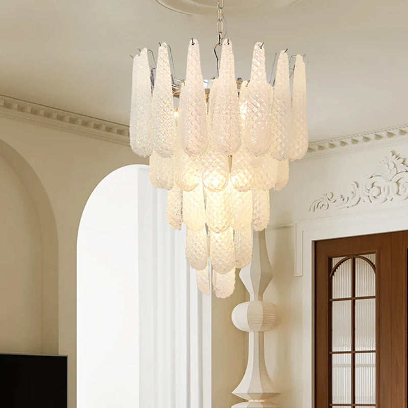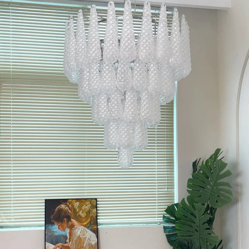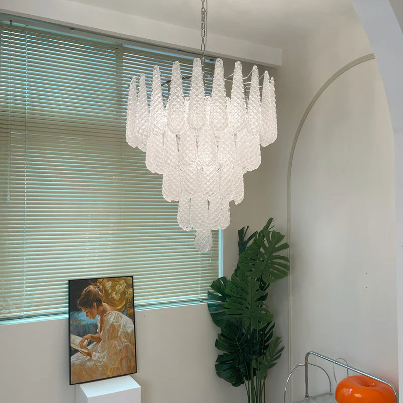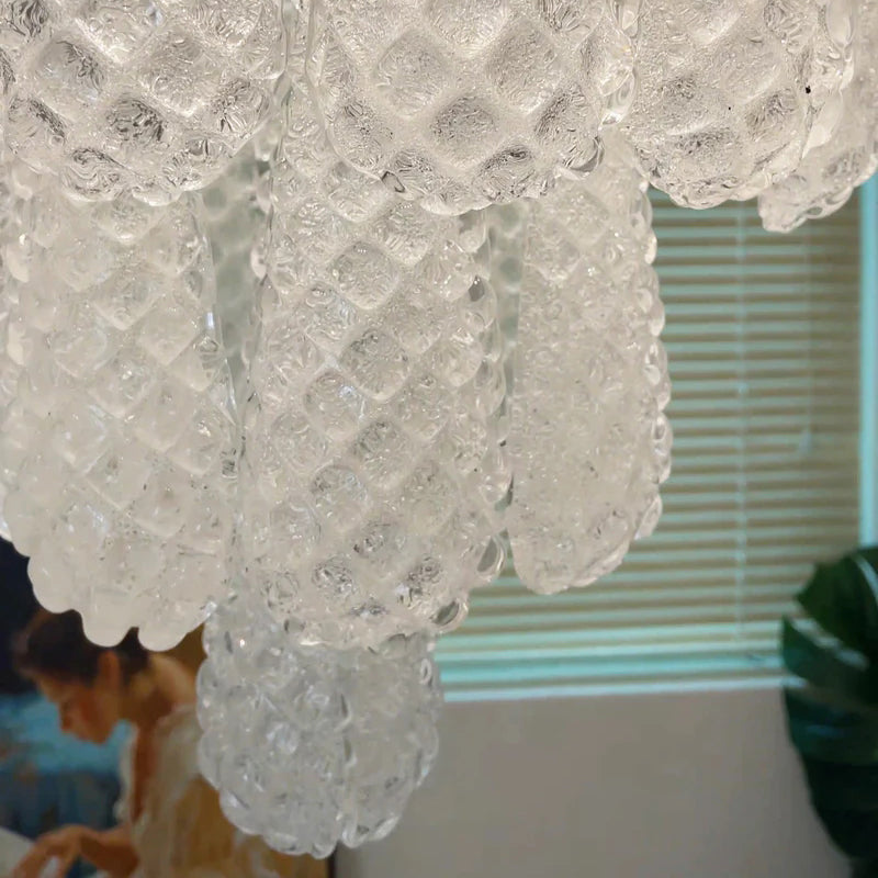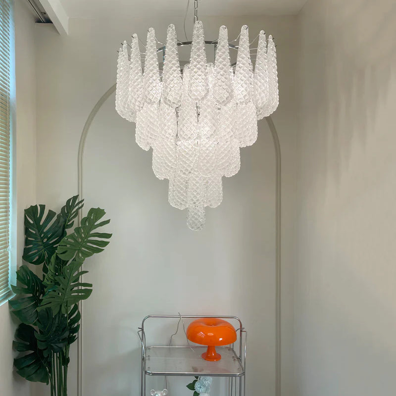 This exquisite chandelier showcases authentic Murano glass craftsmanship, featuring delicate petal-shaped elements in pristine clear glass that refract light beautifully throughout any space. Each petal is meticulously hand-formed using traditional Venetian glassmaking techniques, creating organic movement and visual depth. The transparent design allows light to cascade elegantly, casting luminous patterns that enhance both modern and classical interiors. Perfect for entryways, dining rooms, or living spaces where sophisticated illumination is desired. A statement piece that combines timeless artisanal quality with contemporary elegance.
