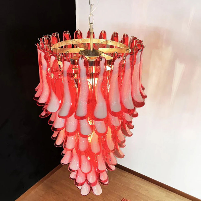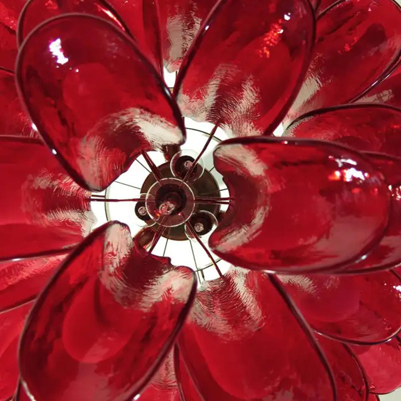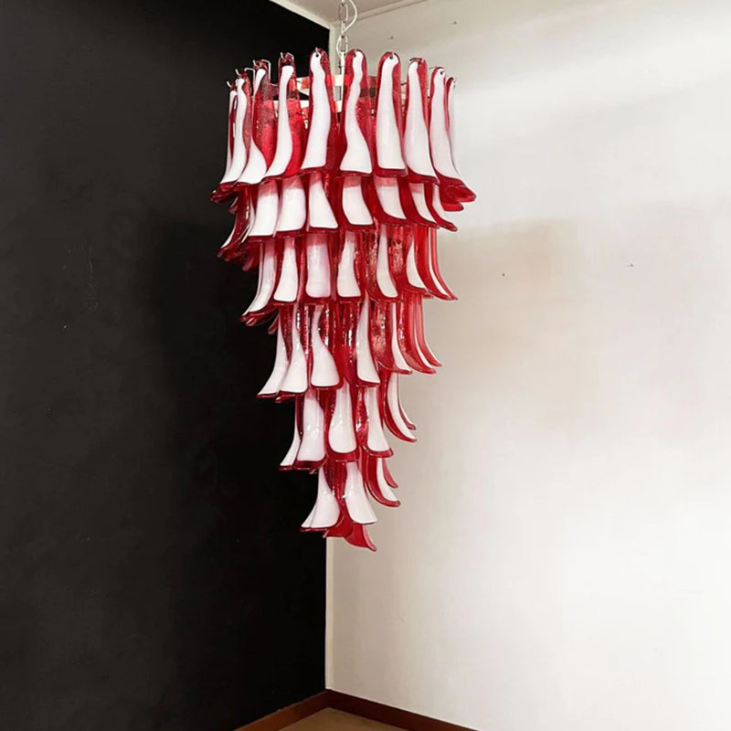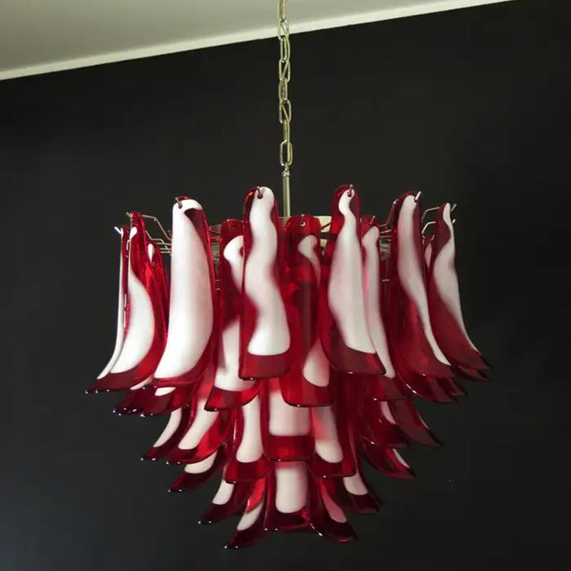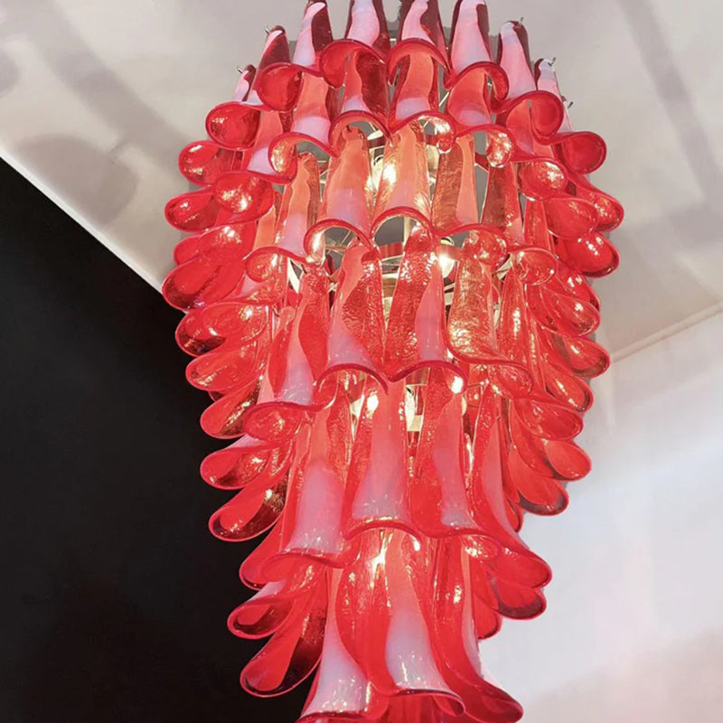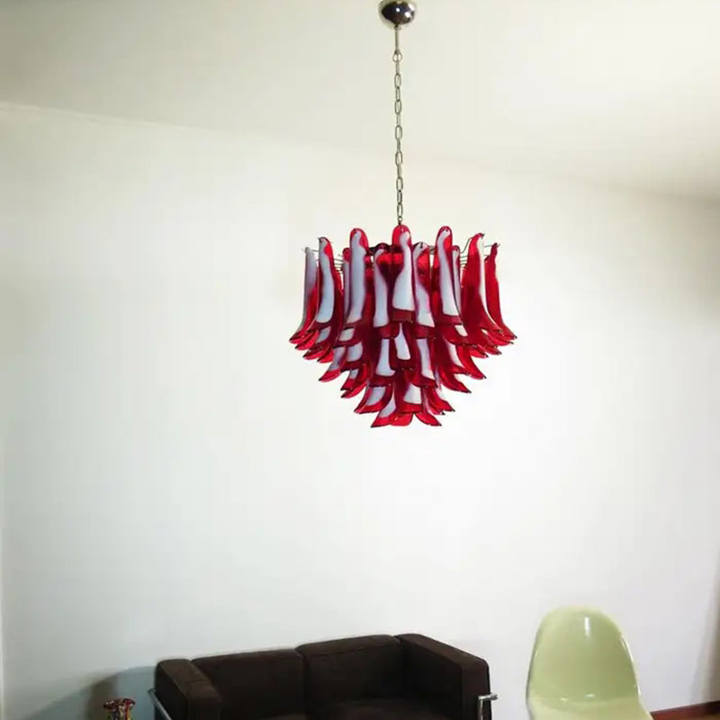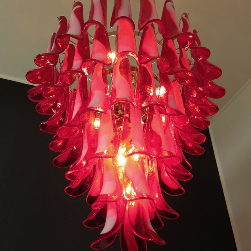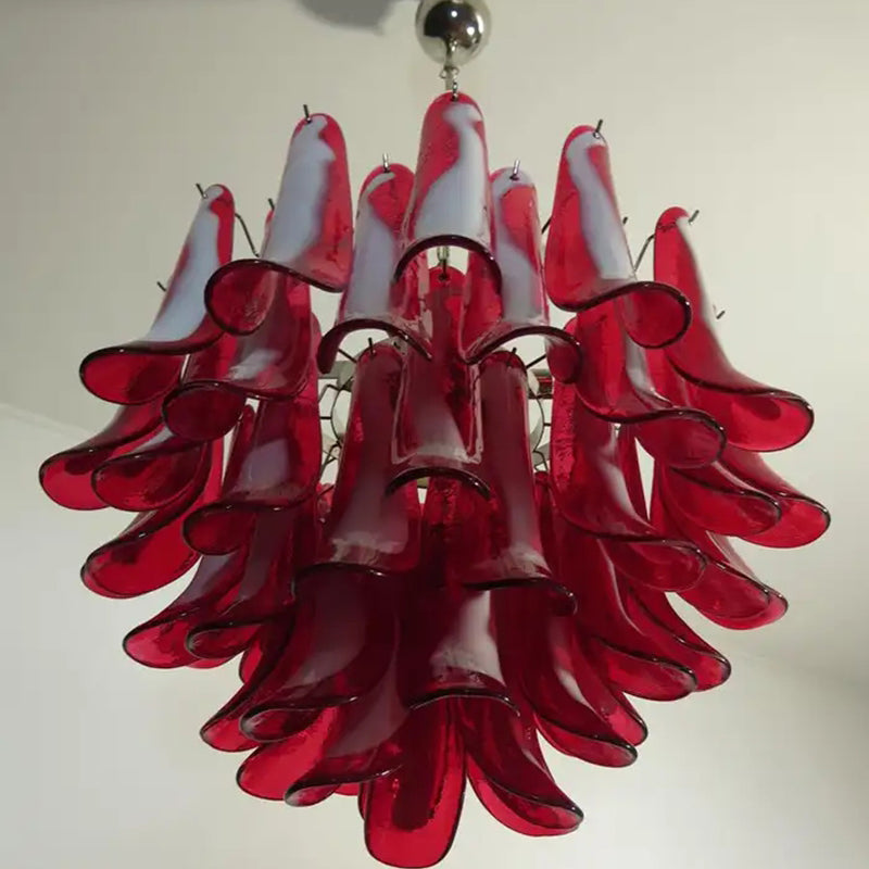 This Red Murano glass chandelier showcases the exquisite craftsmanship of Murano artisans, combining vibrant red glass with intricate design. Its bold hue and elegant form create a striking centerpiece that enhances any room with a refined, artistic ambiance. Ideal for those seeking a unique lighting statement, this chandelier merges tradition with contemporary style, bringing both warmth and sophistication to your space.