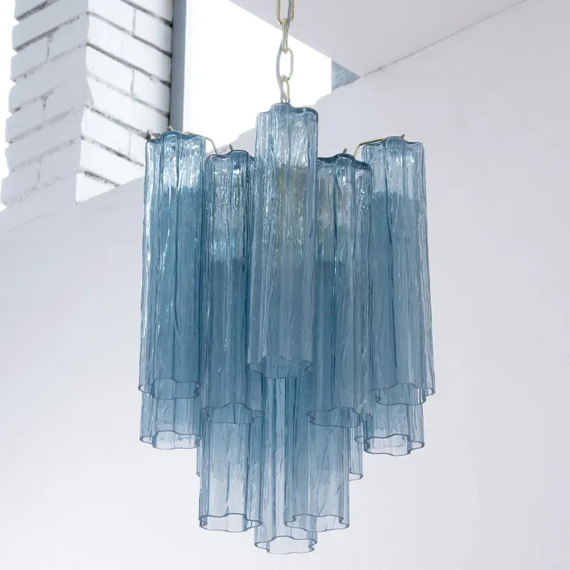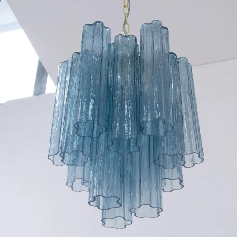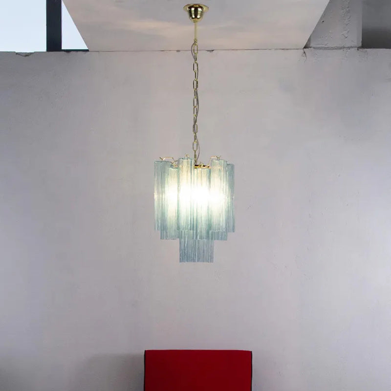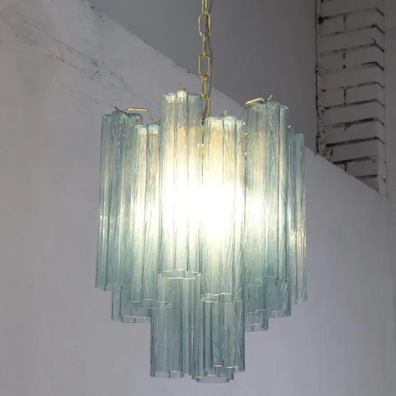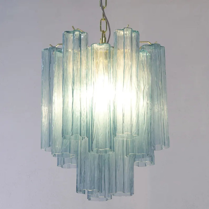 The Murano Tronchi chandelier showcases exquisite craftsmanship with its authentic Murano glass elements arranged in elegant, cylindrical forms. This statement piece combines traditional Venetian artistry with a contemporary silhouette, offering both luminous ambiance and sculptural sophistication. Ideal for refined interiors, it enhances spaces with a warm, inviting glow and timeless design precision.