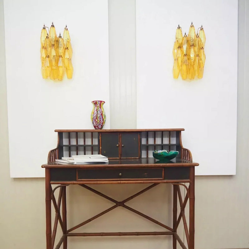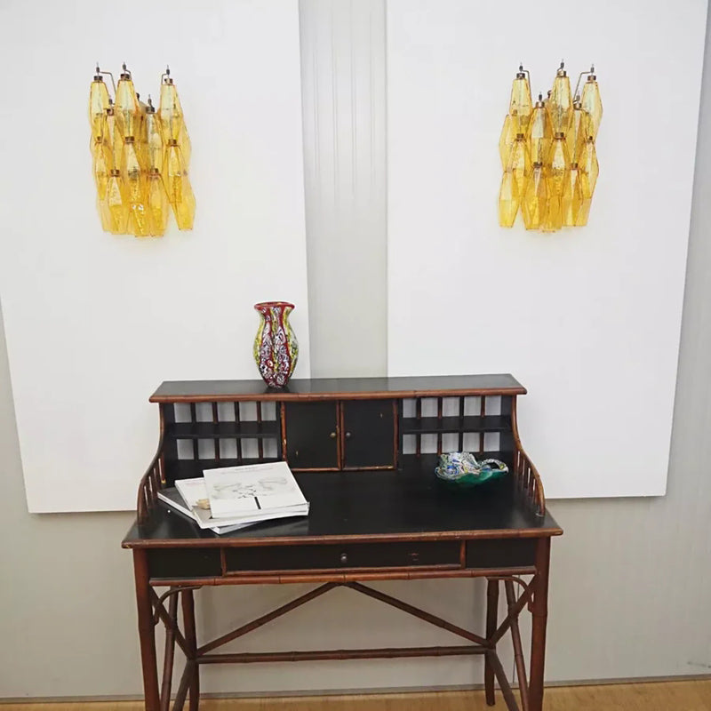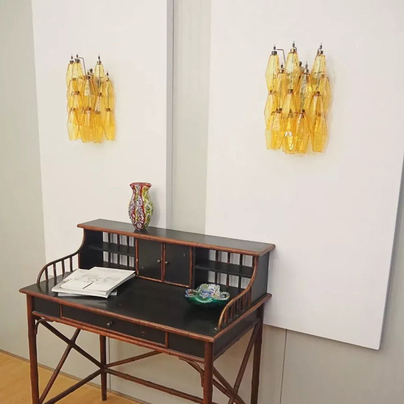 Handcrafted in the tradition of Venetian glassmaking, this Murano Poriedri wall light showcases rich amber glass that casts a warm, inviting glow throughout your space. The artisanal design combines timeless elegance with contemporary sophistication, making it an ideal statement piece for modern interiors seeking refined character. Each fixture reflects the masterful techniques of Murano artisans, delivering both luminous beauty and lasting quality to your home.