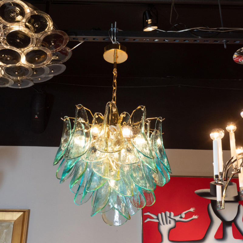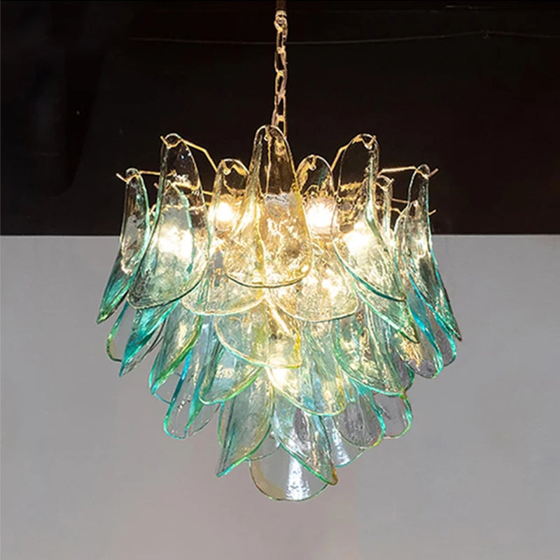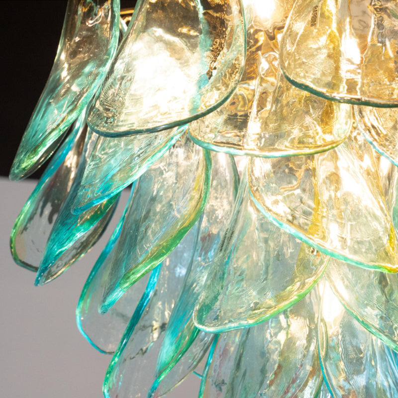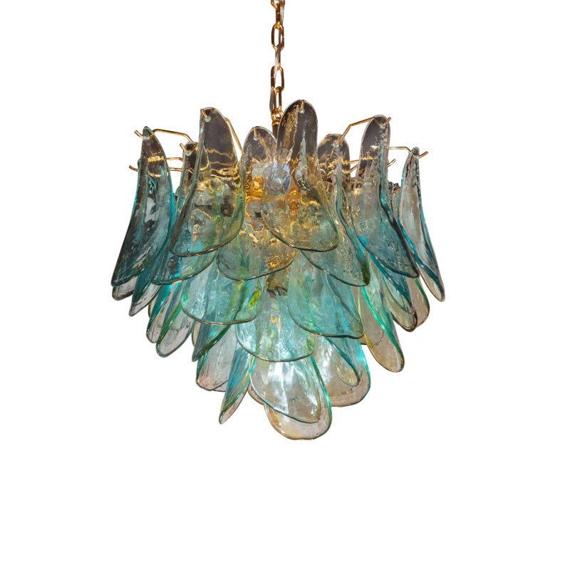 The Acqua Glass Peacock Chandelier showcases exquisite craftsmanship with its hand-blown glass elements inspired by the vibrant hues and elegant form of a peacock. This statement lighting fixture combines artistry with function, delivering both ambient illumination and a striking focal point for upscale interiors. Expertly designed, its delicate glass feathers diffuse light softly, creating a refined atmosphere ideal for living rooms, dining areas, or entryways seeking a sophisticated accent.