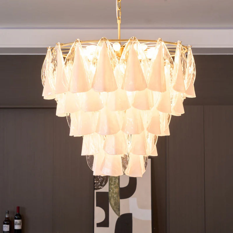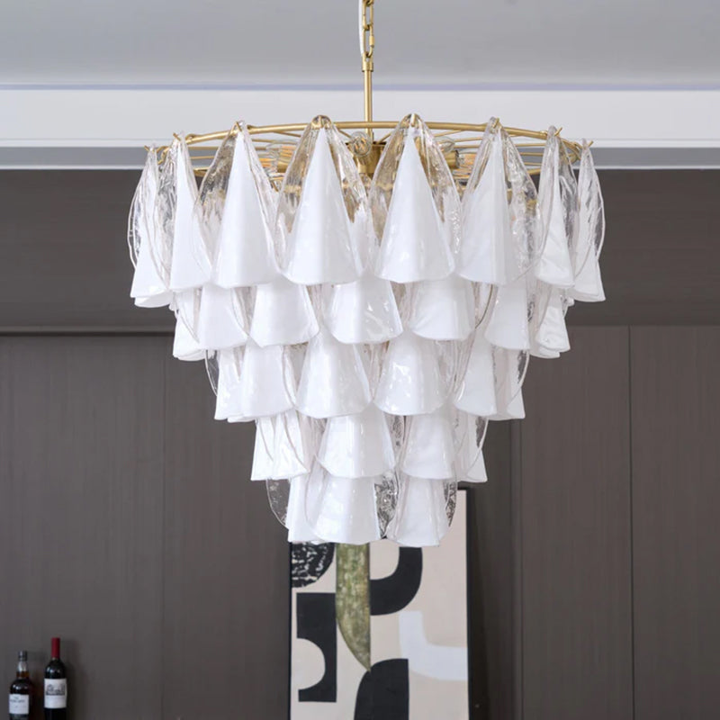 The Lunara Murano glass chandelier showcases exquisite craftsmanship with hand-blown Murano glass elements, creating a sophisticated centerpiece for any interior. Its elegant design balances artistic heritage and modern refinement, providing ambient illumination that enhances the atmosphere of living or dining spaces. This chandelier combines timeless beauty and expert glass artistry, making it an investment in both style and quality lighting.