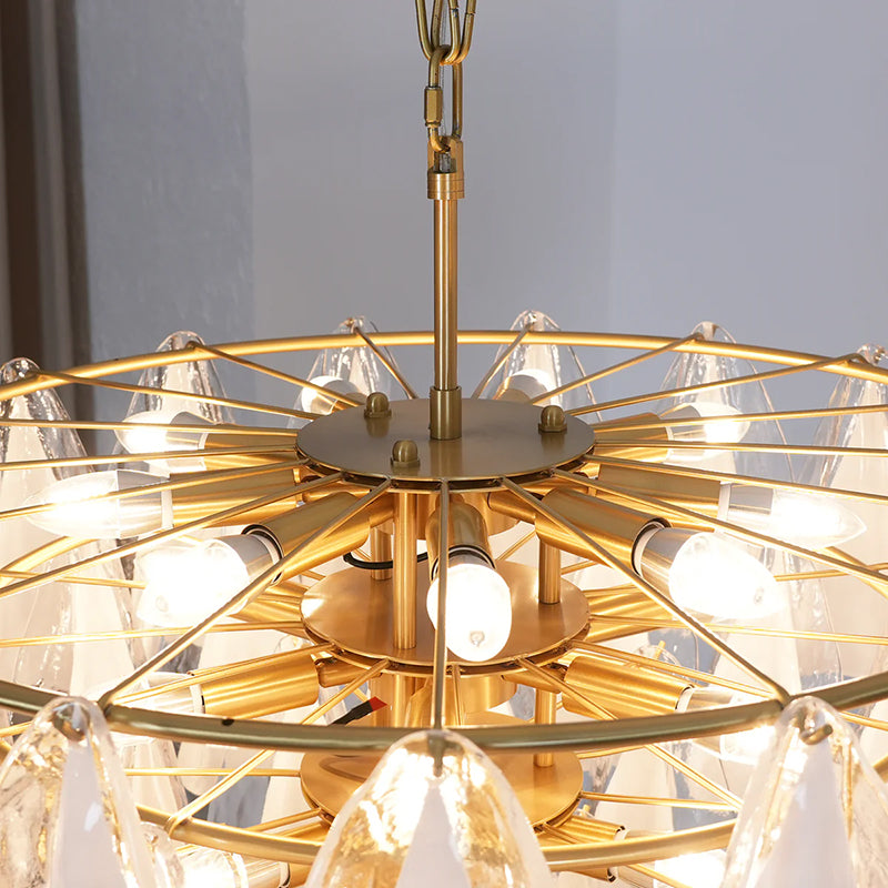 The lamp body is made of solid metal, forged and carved by hand. Exquisite polishing technology ensures a stable structure and perfect details. The luster of the metal and the crystal glass complement each other, showing a luxurious texture.