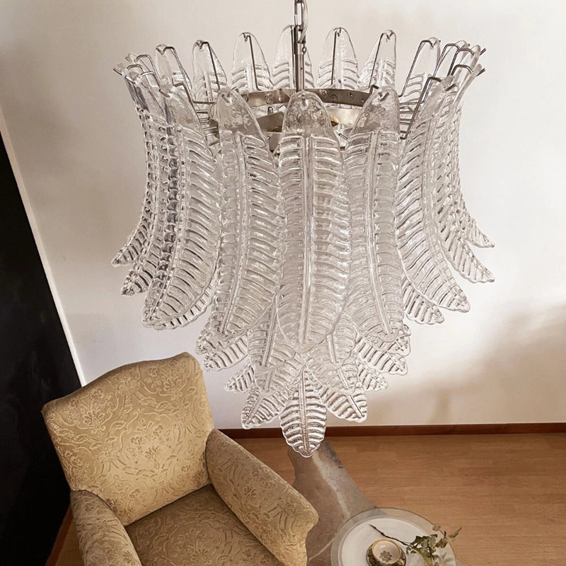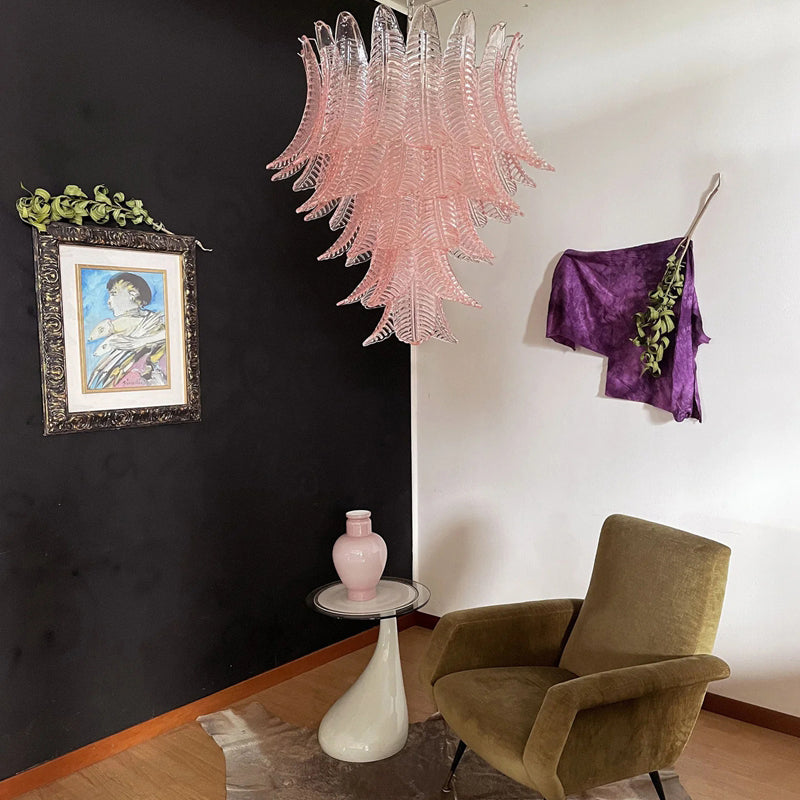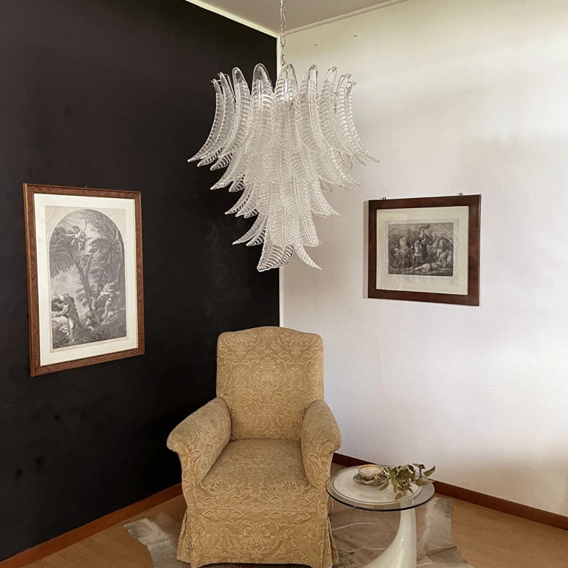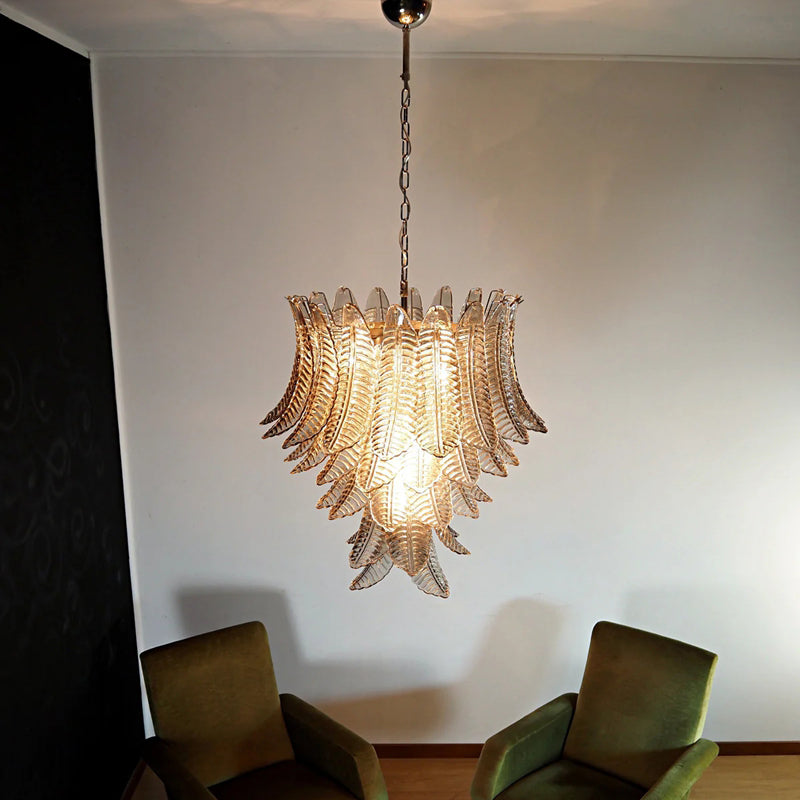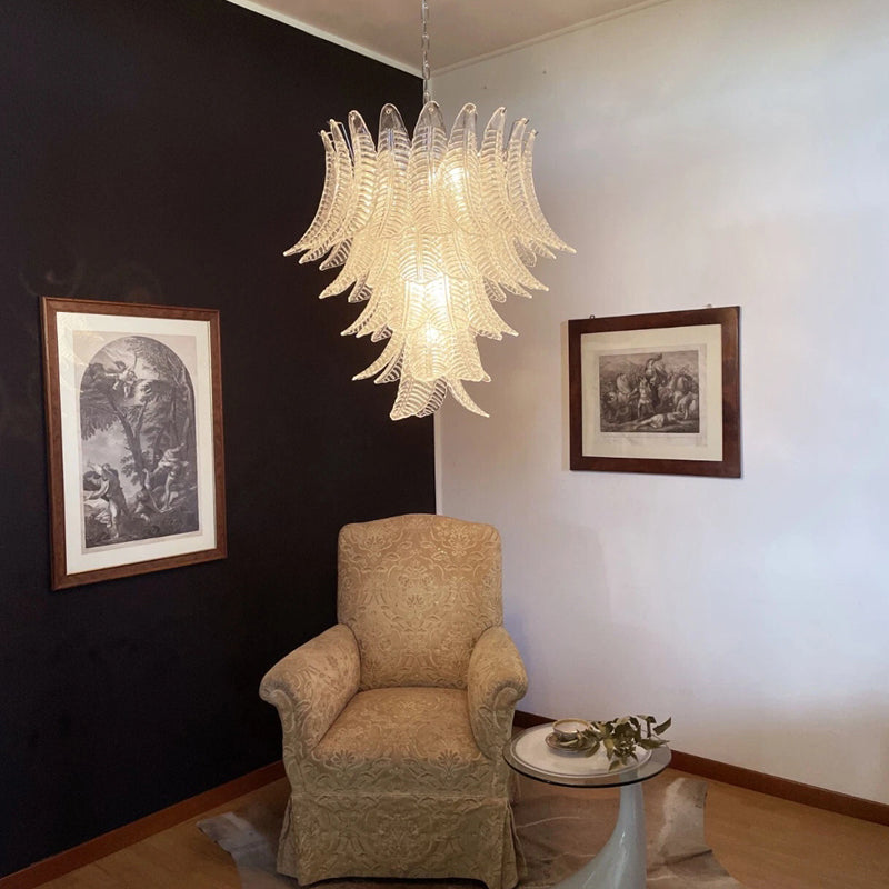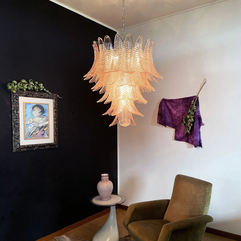 Elevate your space with this massive 5-tiered Felci glass chandelier, crafted in Murano, Italy. Each tier showcases exquisite Murano glass artistry, combining refined elegance with impressive scale to create a centerpiece that commands attention. Its intricate design and exceptional craftsmanship offer both aesthetic brilliance and enduring quality, making it a distinguished addition for sophisticated interiors seeking timeless Italian luxury.