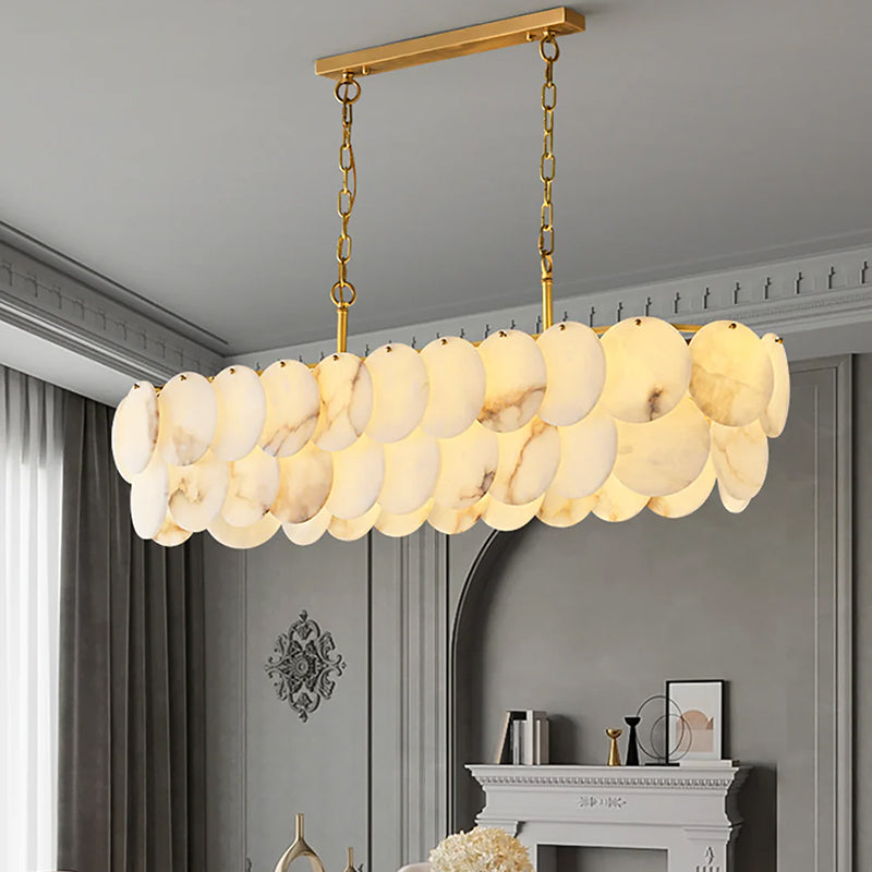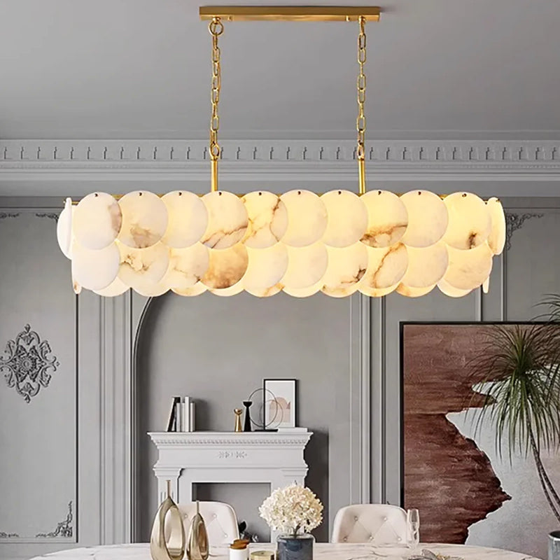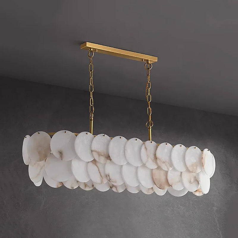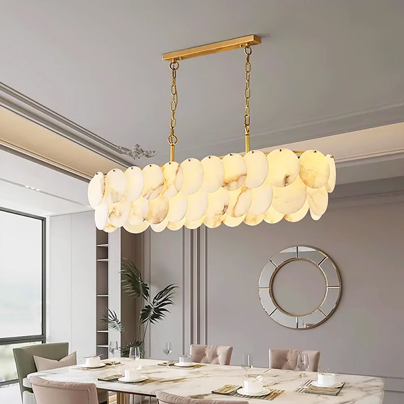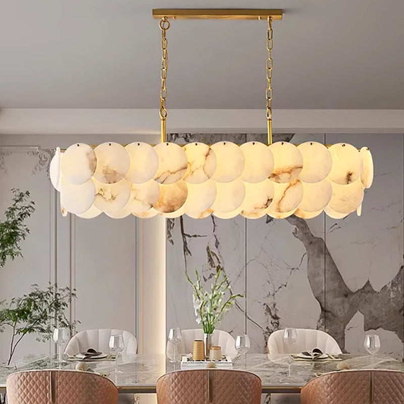 Add radiance to your space with our modern luxury round alabaster chandelier. It is cleverly suspended from a wrought iron frame, reflecting stunning light. The hand-brushed finish adds a touch of handcrafted elegance. Bring the beauty of nature into your home.