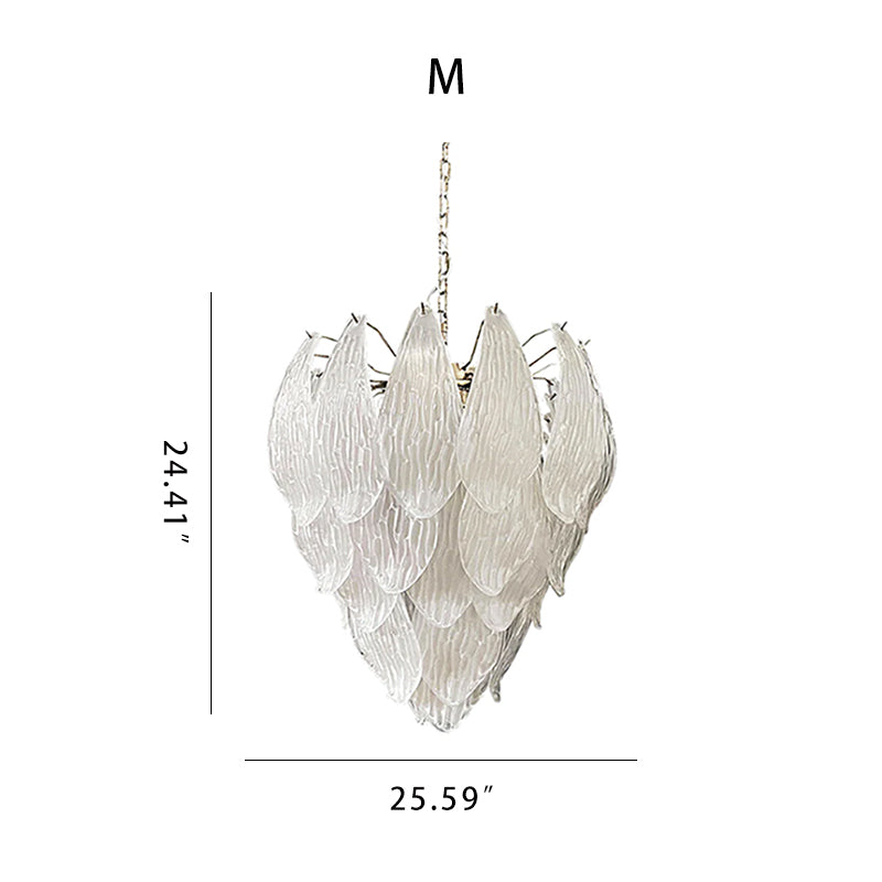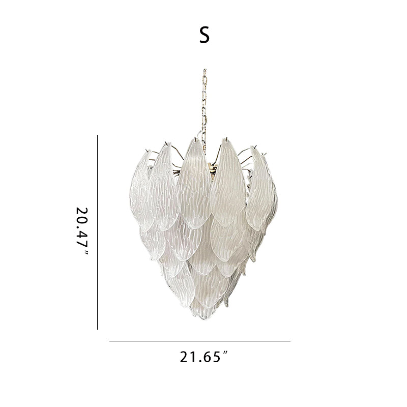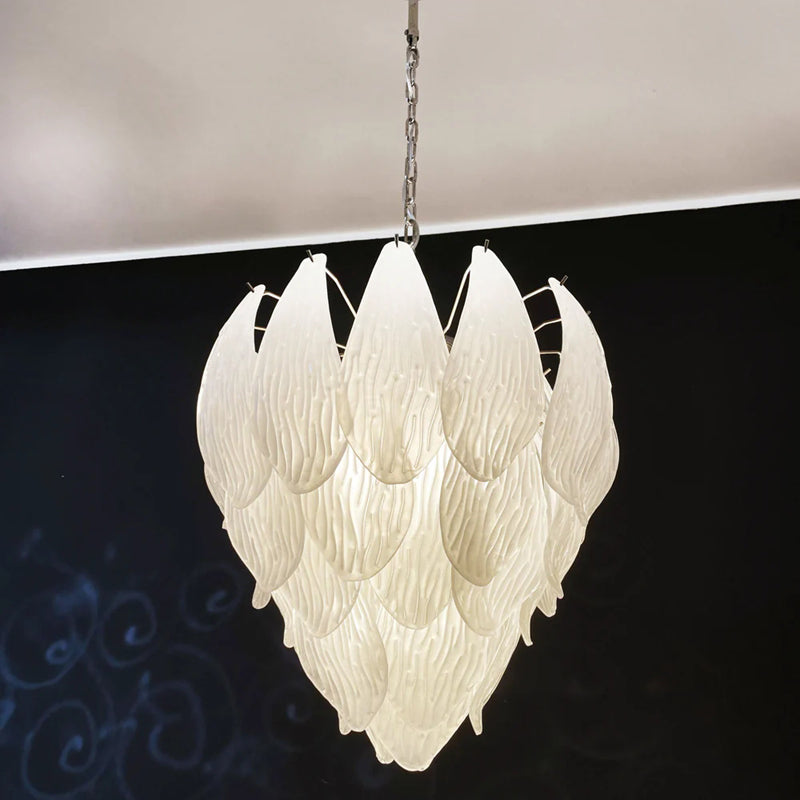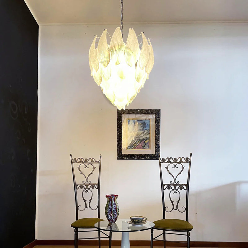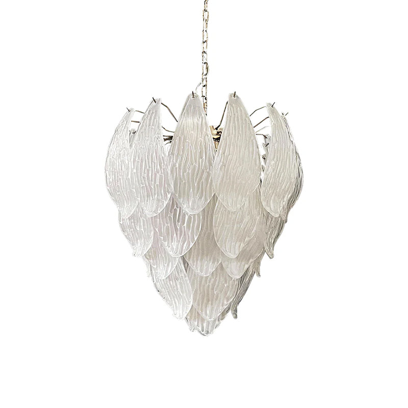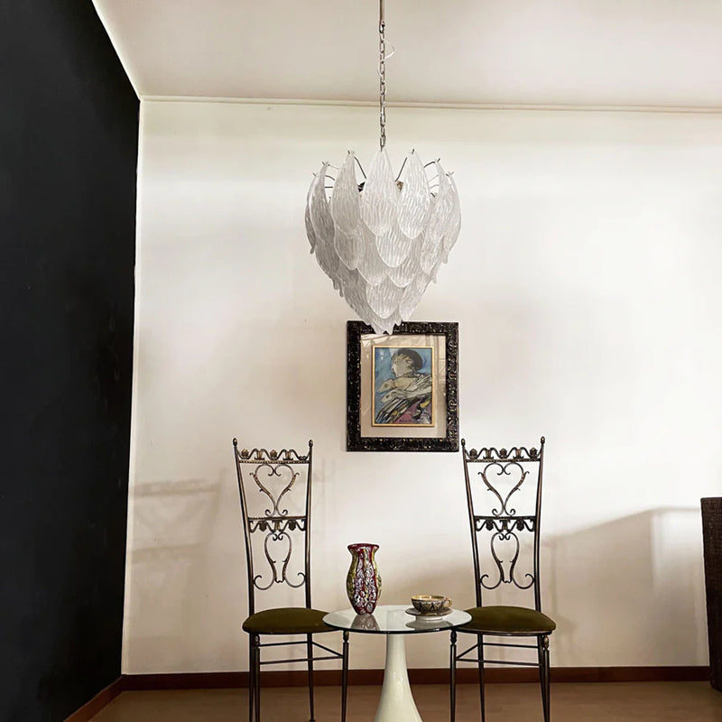 The Murano frosted cut glass leaf chandelier combines expert craftsmanship with elegant design. Featuring delicately cut frosted glass shaped like leaves, this chandelier adds a refined touch to any space. Its soft diffusion of light creates a warm, inviting atmosphere while showcasing artisan quality typical of Murano glass. Perfect for those seeking a sophisticated centerpiece that balances classic artistry with modern illumination.