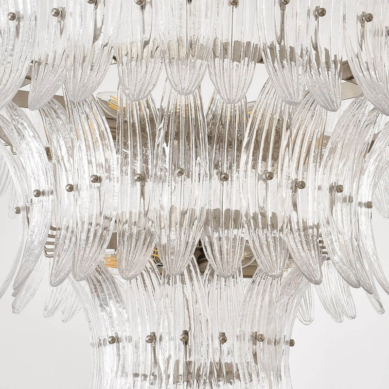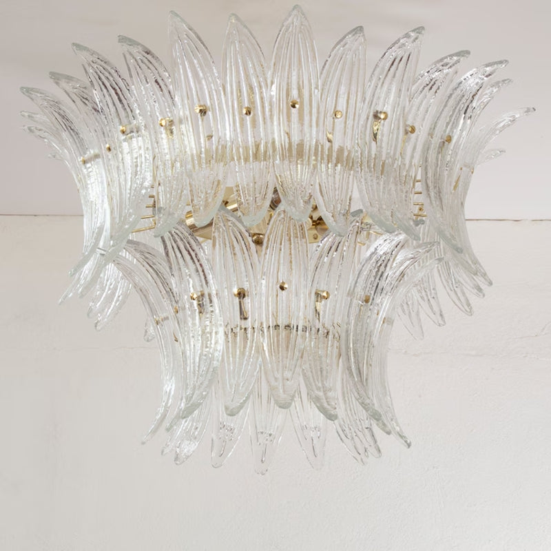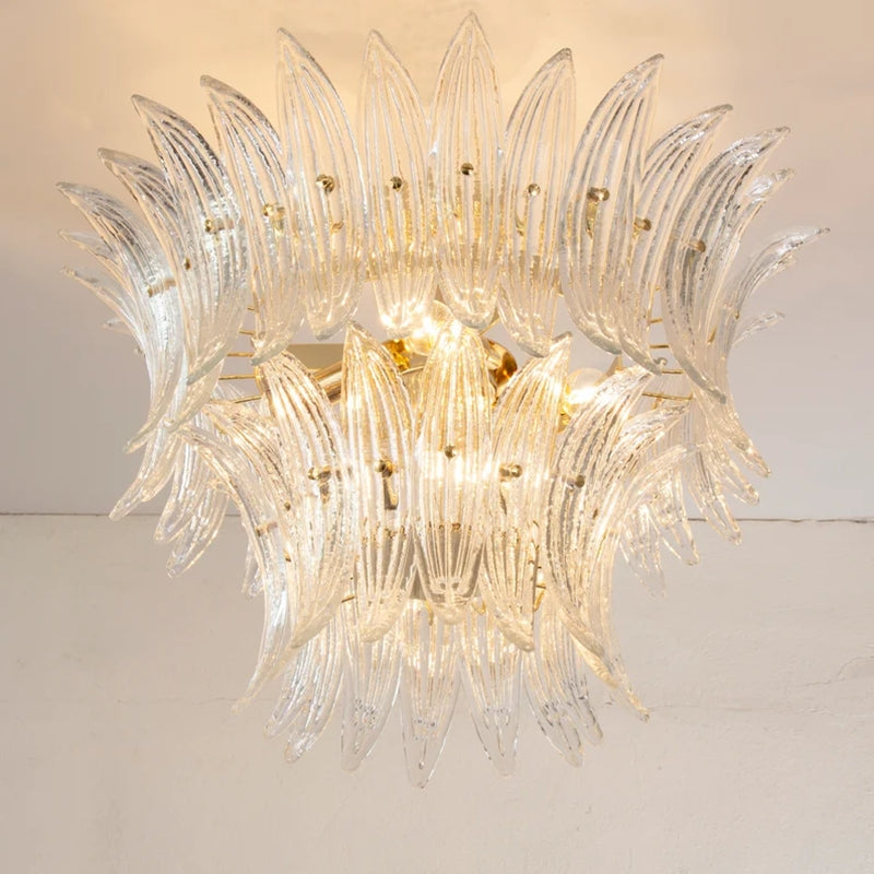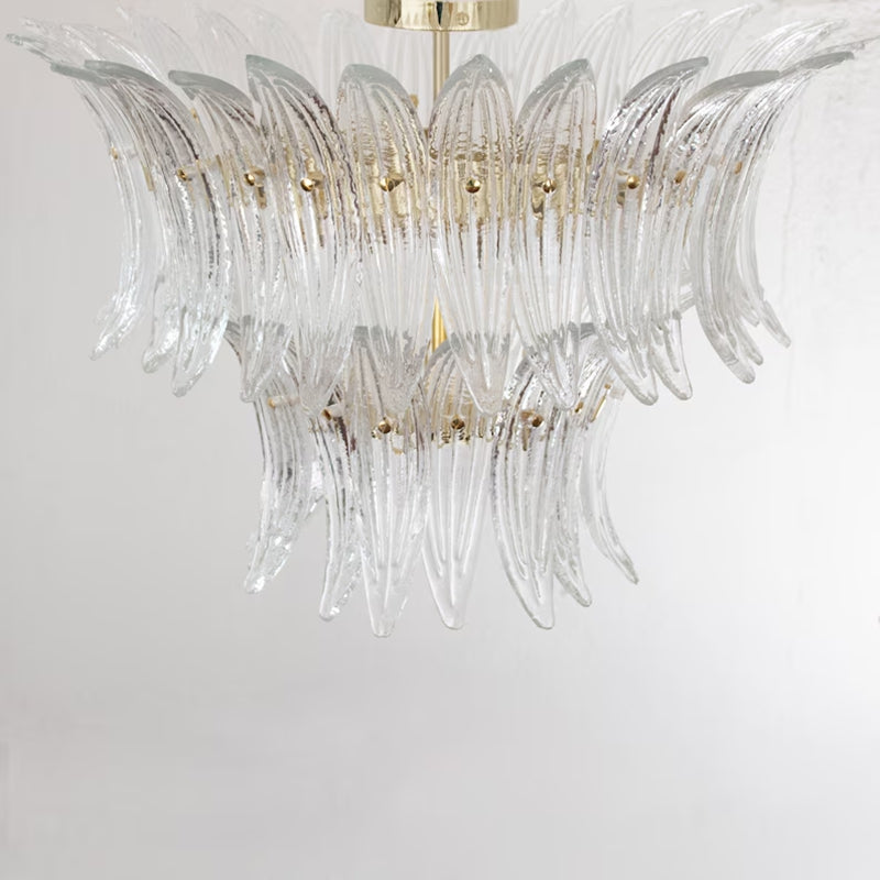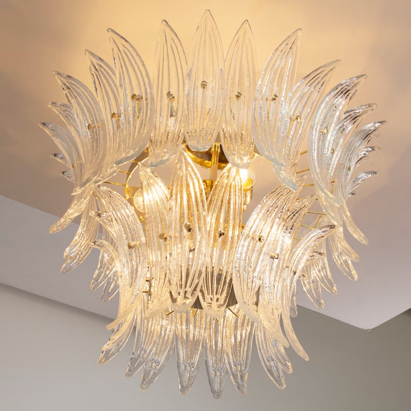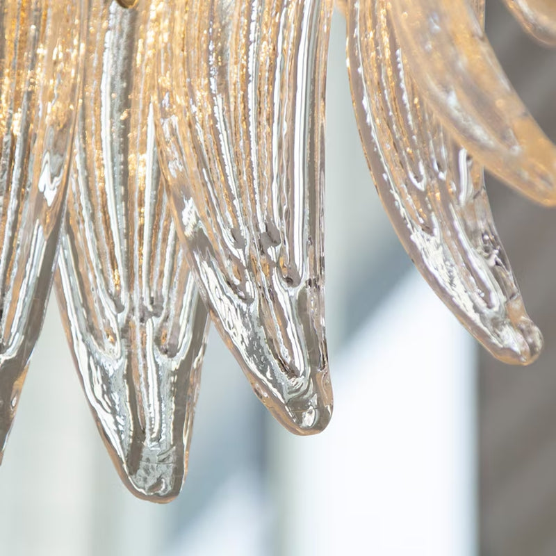 The Murano Palm Glass Chandelier blends exquisite craftsmanship with elegant design, showcasing hand-blown Murano glass shaped like delicate palm leaves. Its refined artistry creates a stunning centerpiece that brings both luxury and warmth to any space. Ideal for sophisticated interiors, this chandelier offers a unique interplay of light and color, enhancing ambiance while demonstrating expert Italian glassmaking tradition. Perfect for adding a distinguished, timeless character to living rooms, dining areas, or entryways.