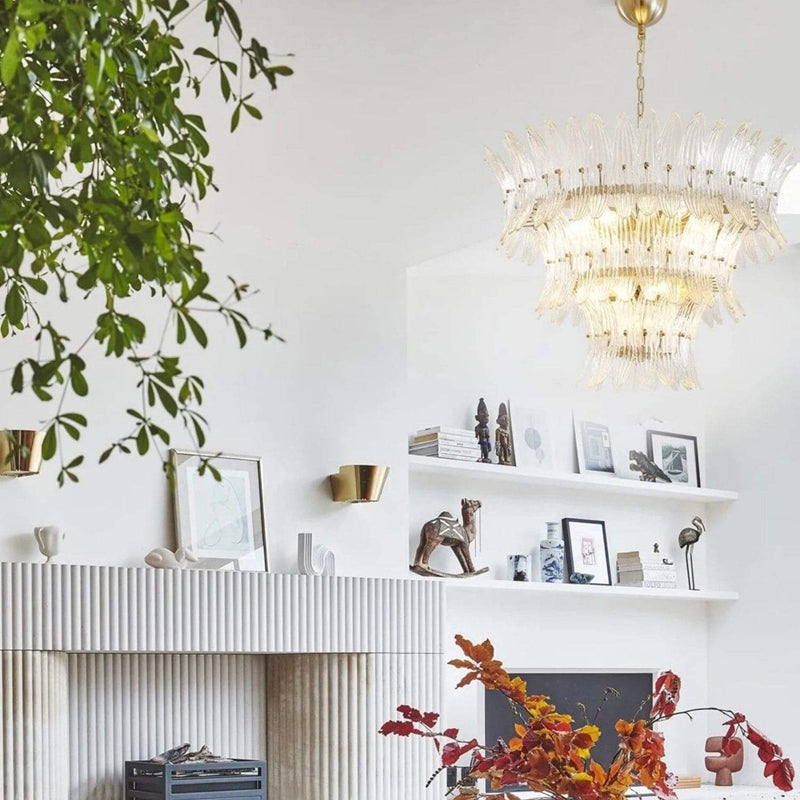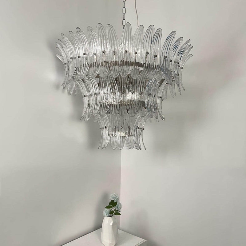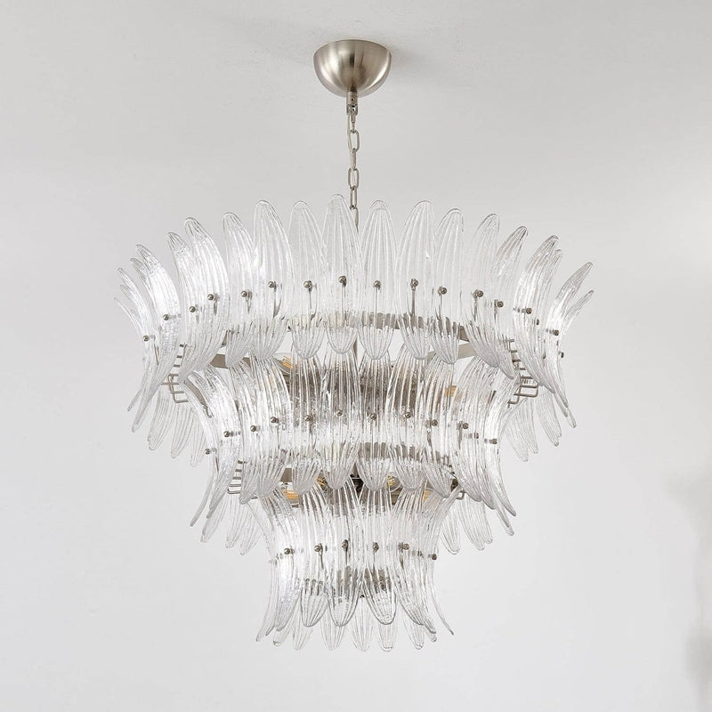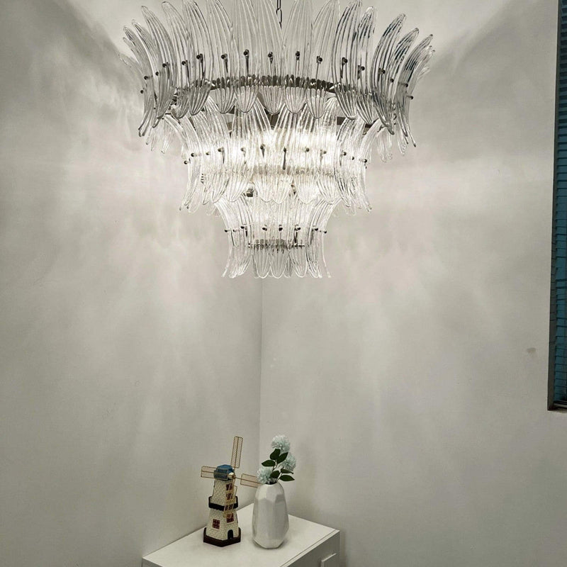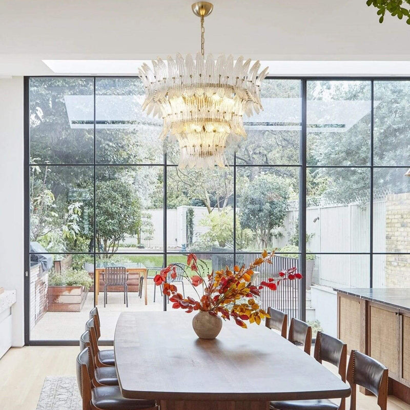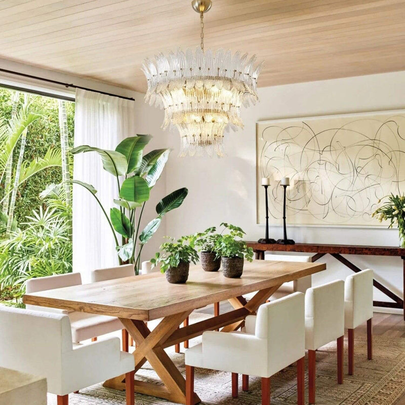 The Murano Palm Glass Chandelier blends exquisite craftsmanship with elegant design, showcasing hand-blown Murano glass shaped like delicate palm leaves. Its refined artistry creates a stunning centerpiece that brings both luxury and warmth to any space. Ideal for sophisticated interiors, this chandelier offers a unique interplay of light and color, enhancing ambiance while demonstrating expert Italian glassmaking tradition. Perfect for adding a distinguished, timeless character to living rooms, dining areas, or entryways.