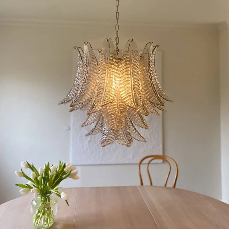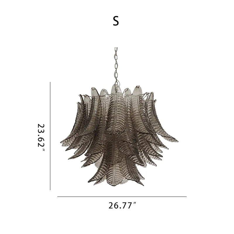 The Smoked Murano chandelier features four elegant tiers of handcrafted Murano glass, showcasing refined artistry and timeless design. Its smoked finish adds a sophisticated, smoky ambiance to any space, blending classic craftsmanship with contemporary style. Ideal for elevating dining rooms or grand entryways, this chandelier delivers both impressive visual impact and subtle, warm illumination.