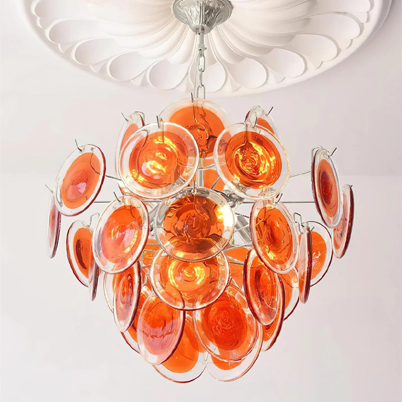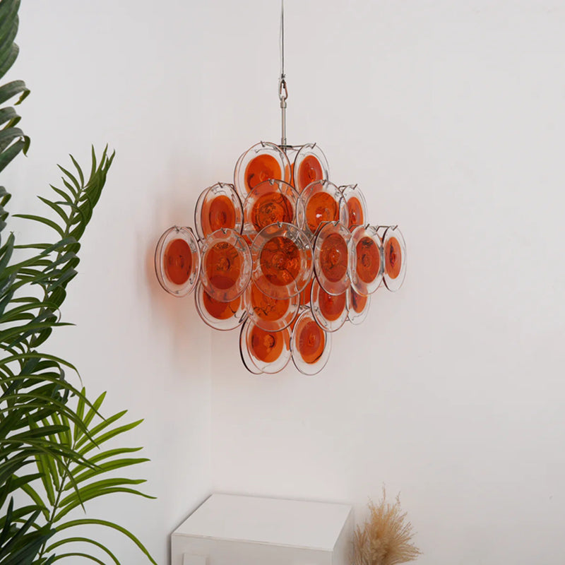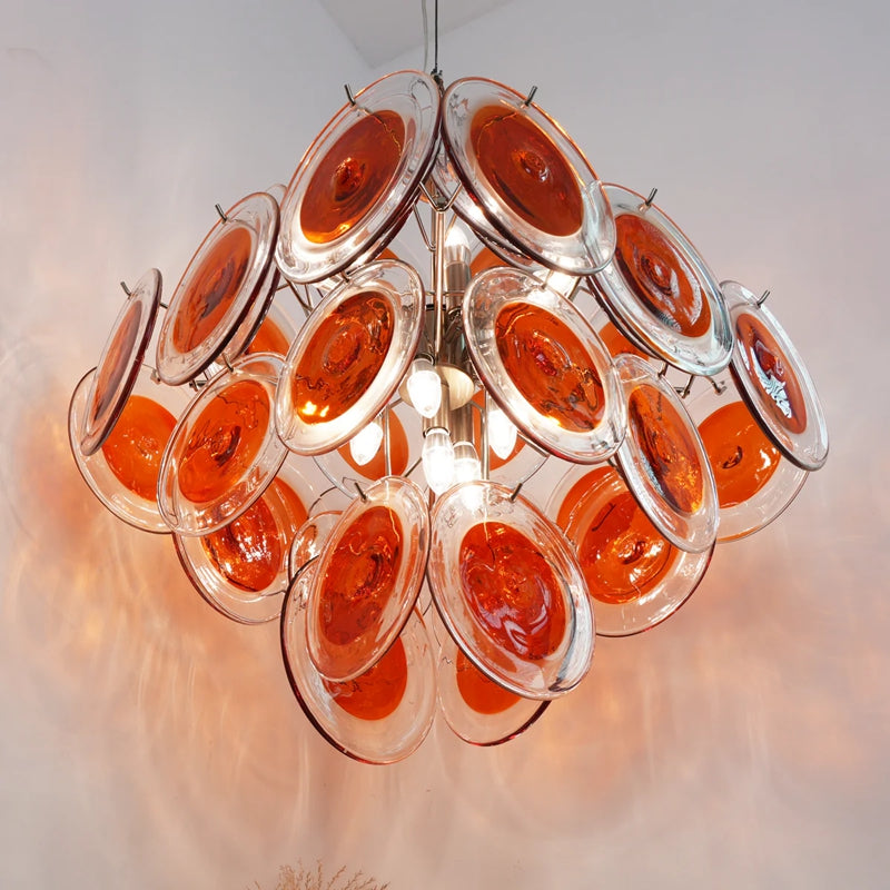 Elevate your space with this Vintage Murano amber transparent disc chandelier, an exemplary blend of classic craftsmanship and timeless design. Each amber disc is handblown Murano glass, radiating warm, inviting light through its transparent layers. This chandelier offers not only a stunning visual centerpiece but also superior ambient illumination, perfect for adding sophistication to dining rooms, living areas, or entryways. Its vintage appeal ensures a unique statement piece that complements both traditional and contemporary interiors with expert style and authenticity.