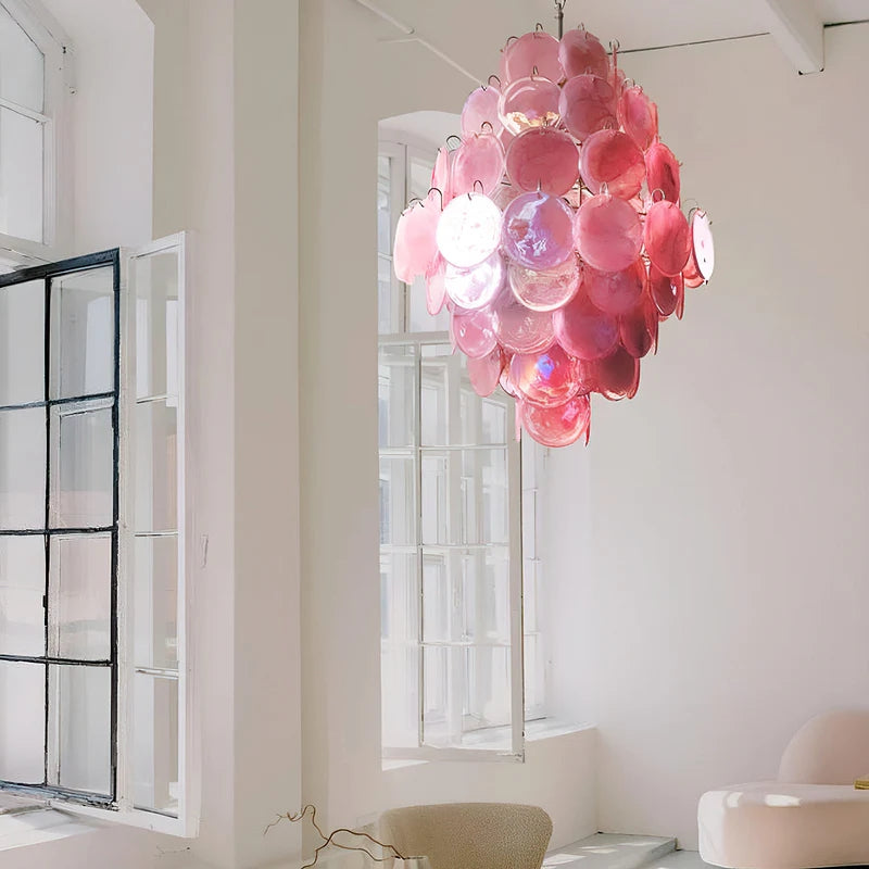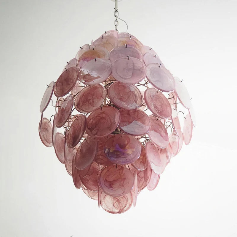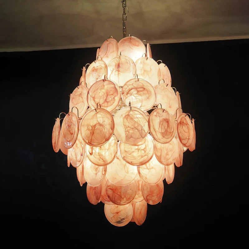 Vintage Murano Pink Cloud Disc Chandelier